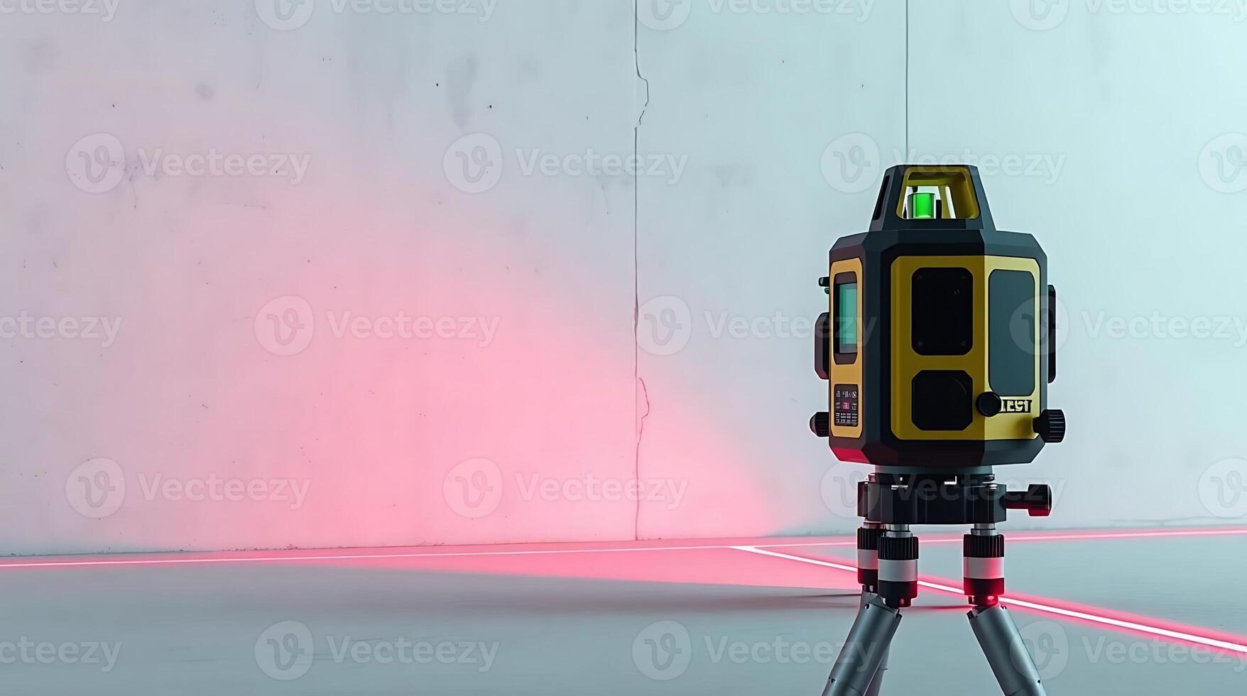Precision laser level projecting bright red lines for accurate construction layout and alignment on job site Pro Photo