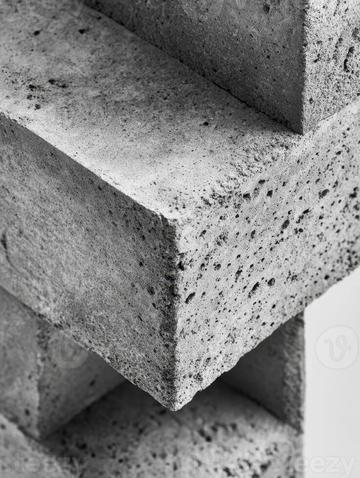 Detailed texture and sharp angles of porous gray cinder blocks stacked in a minimalist architectural composition against a light background Pro Photo