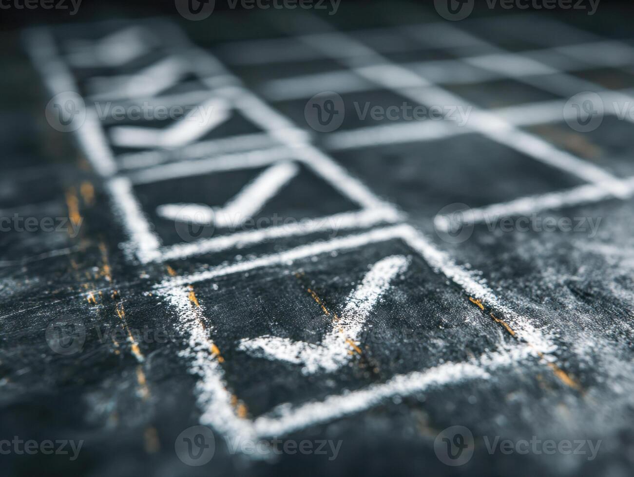 Detailed chalk-drawn checklist with multiple check marks on a dark textured surface highlighting progress and completion of tasks in a conceptual arrangement Pro Photo