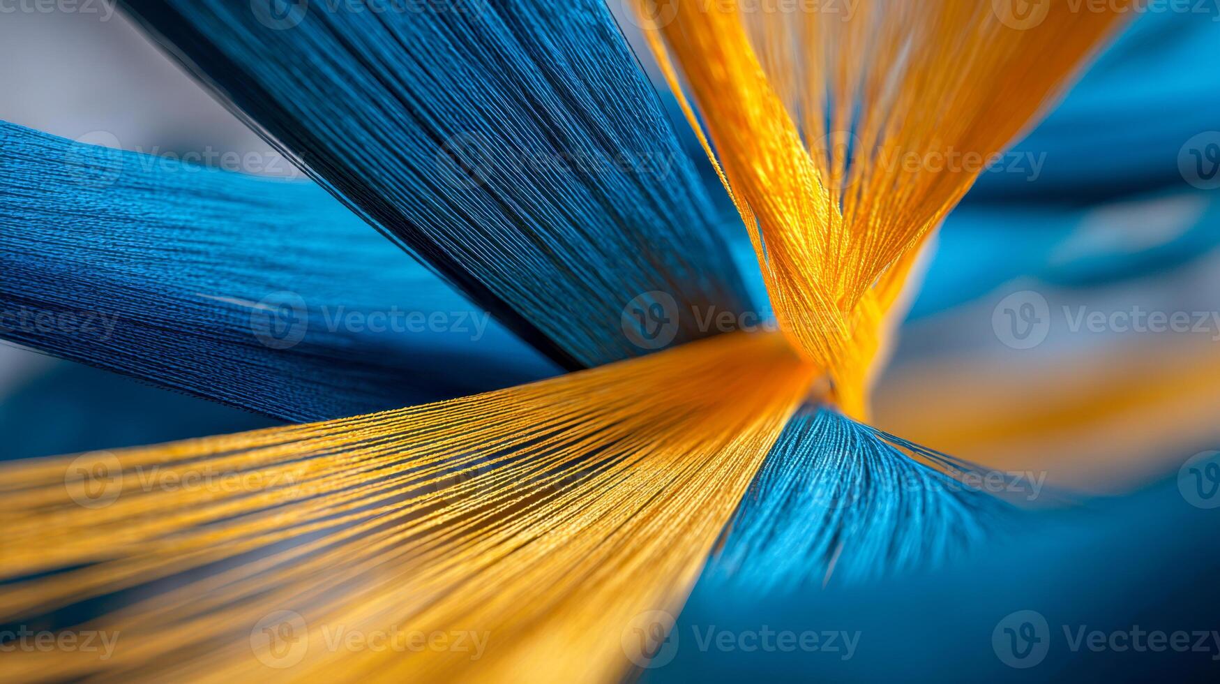 Intricate vibrant blue and yellow threads intertwined creating a dynamic textured pattern with sharp focus illustrating textile artistry and design creativity Pro Photo