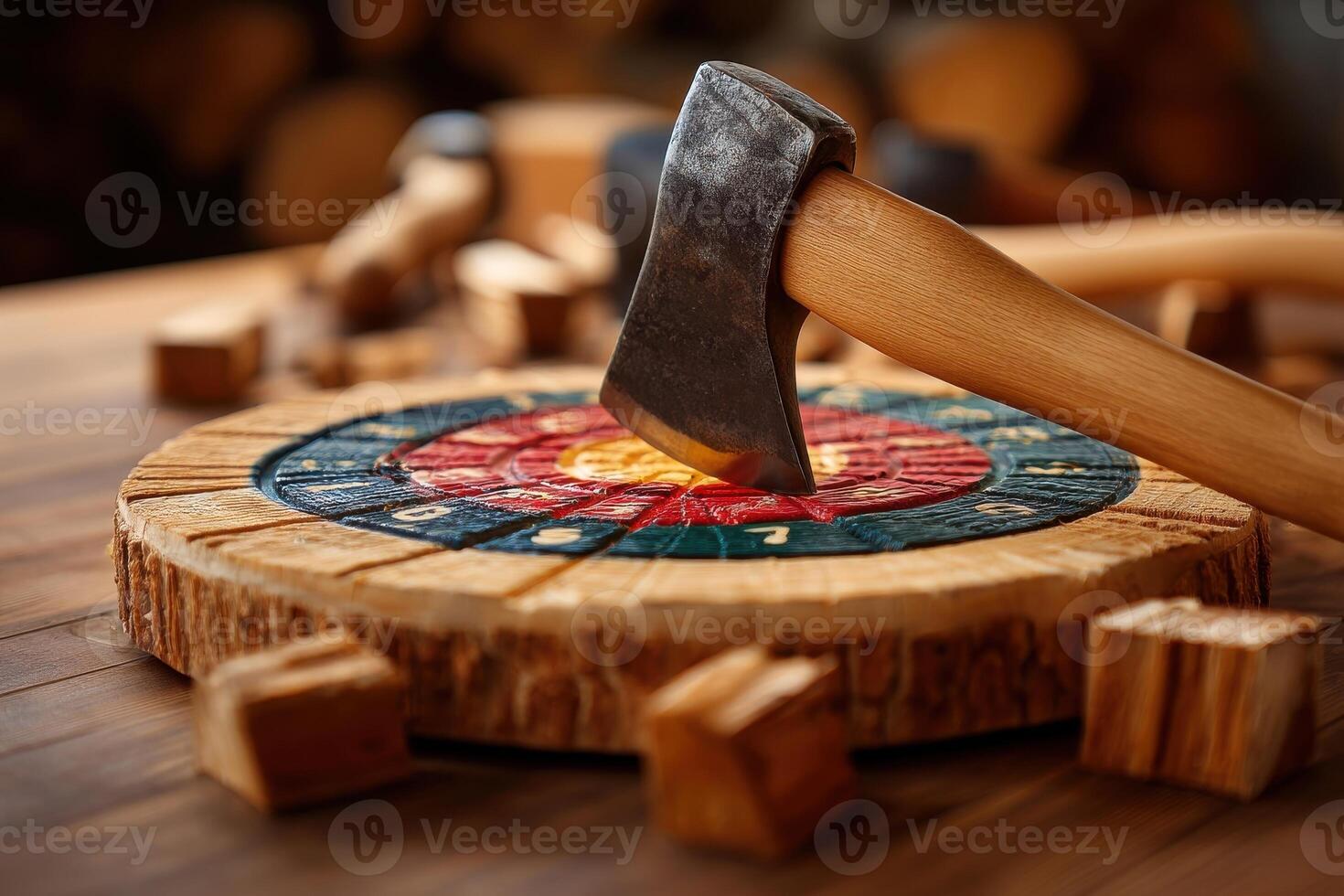 Topdown View Wooden Target with Embedded Axes Pro Photo