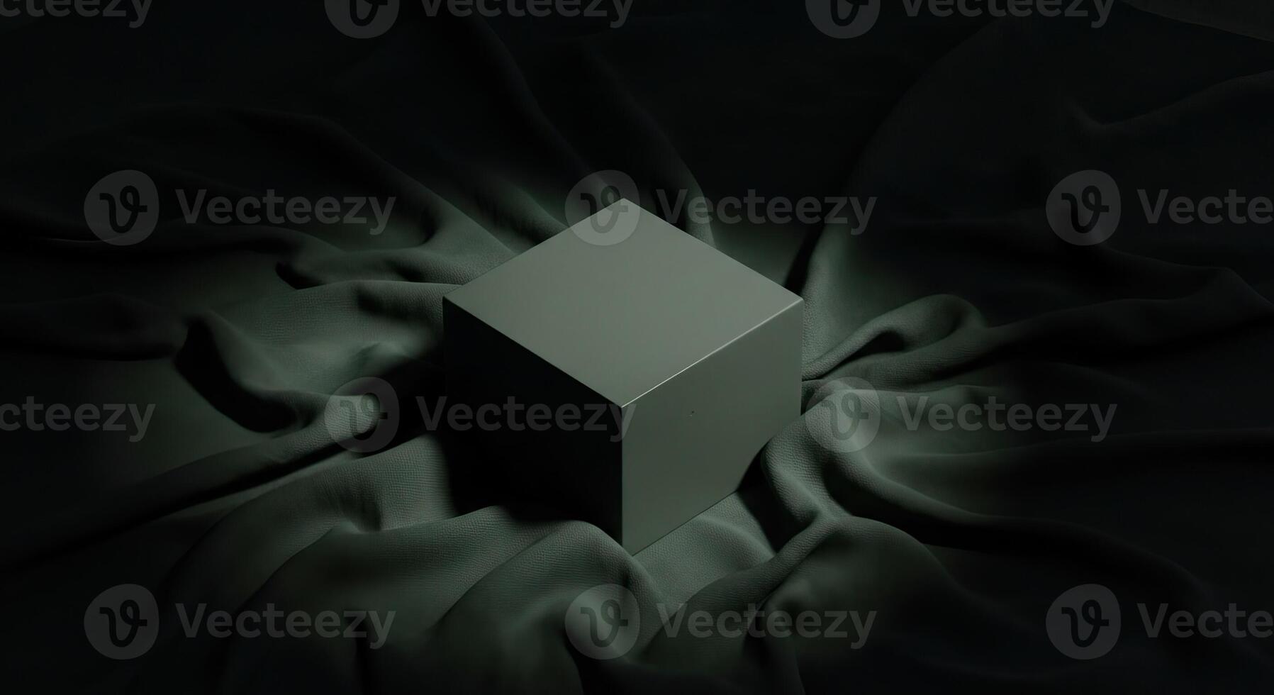 Cube on Green Fabric Minimalist Backdrop for Product Display and 3D Render Pro Photo