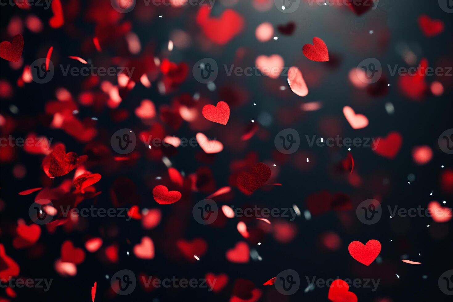 Floating red hearts and bokeh lights against a dark background c Pro Photo