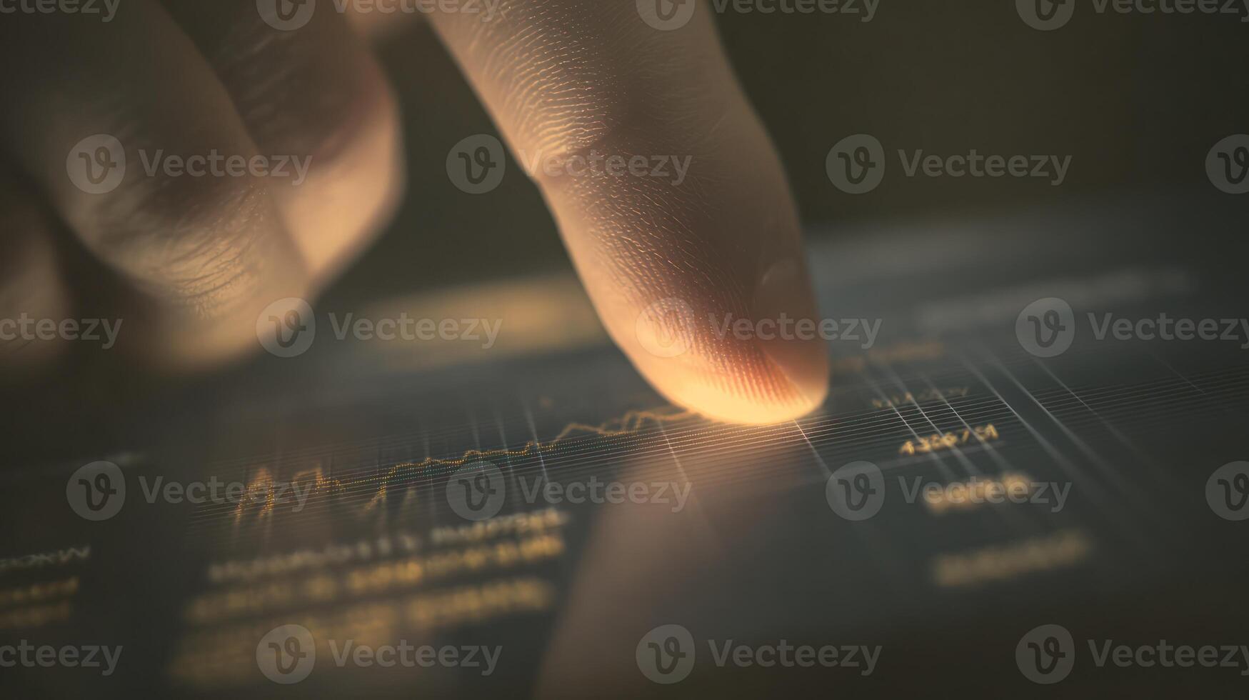 Close up of a finger touching a screen displaying data visualization Pro Photo