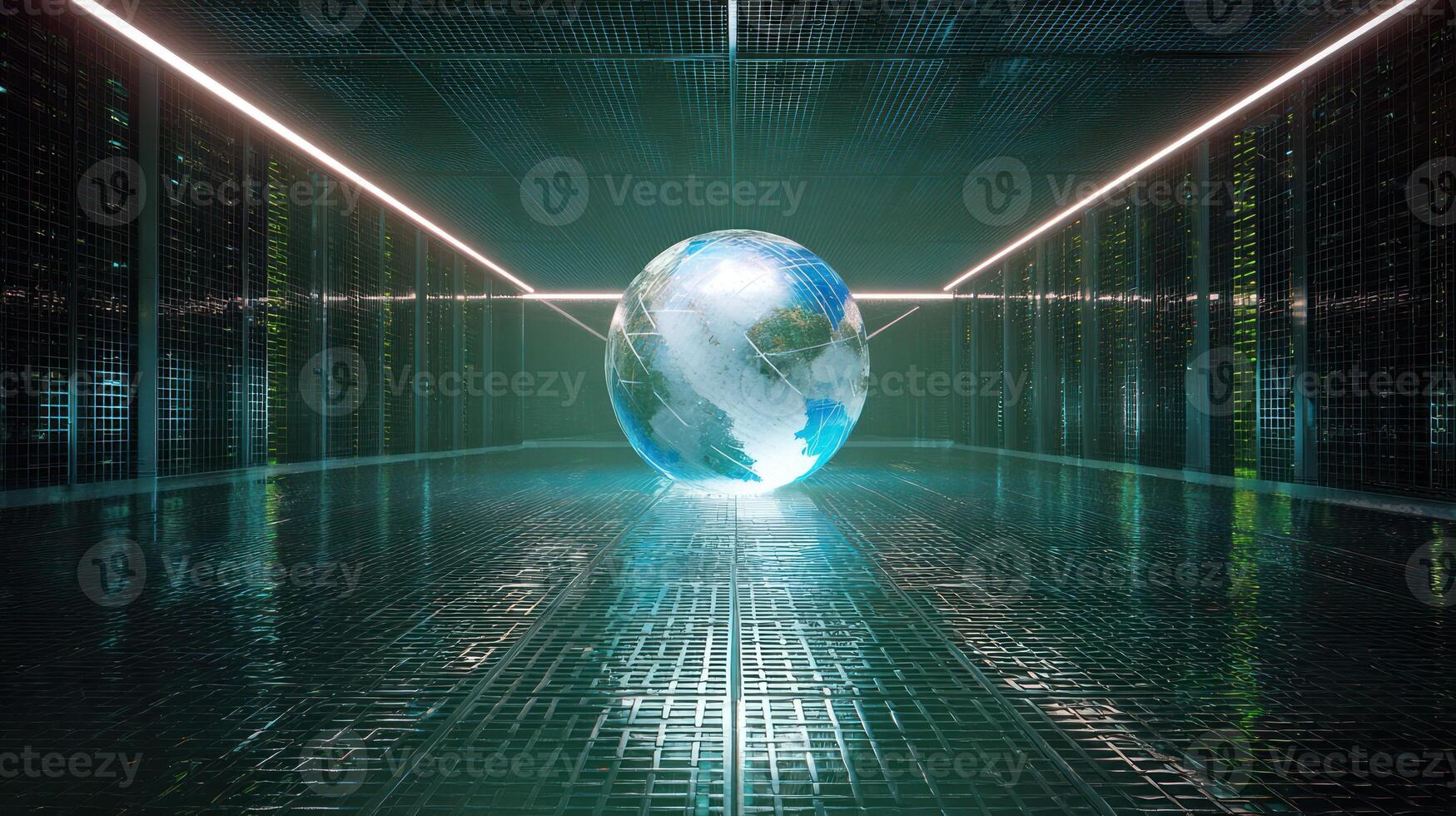 Abstract globe in data center environment with futuristic lighting Pro Photo
