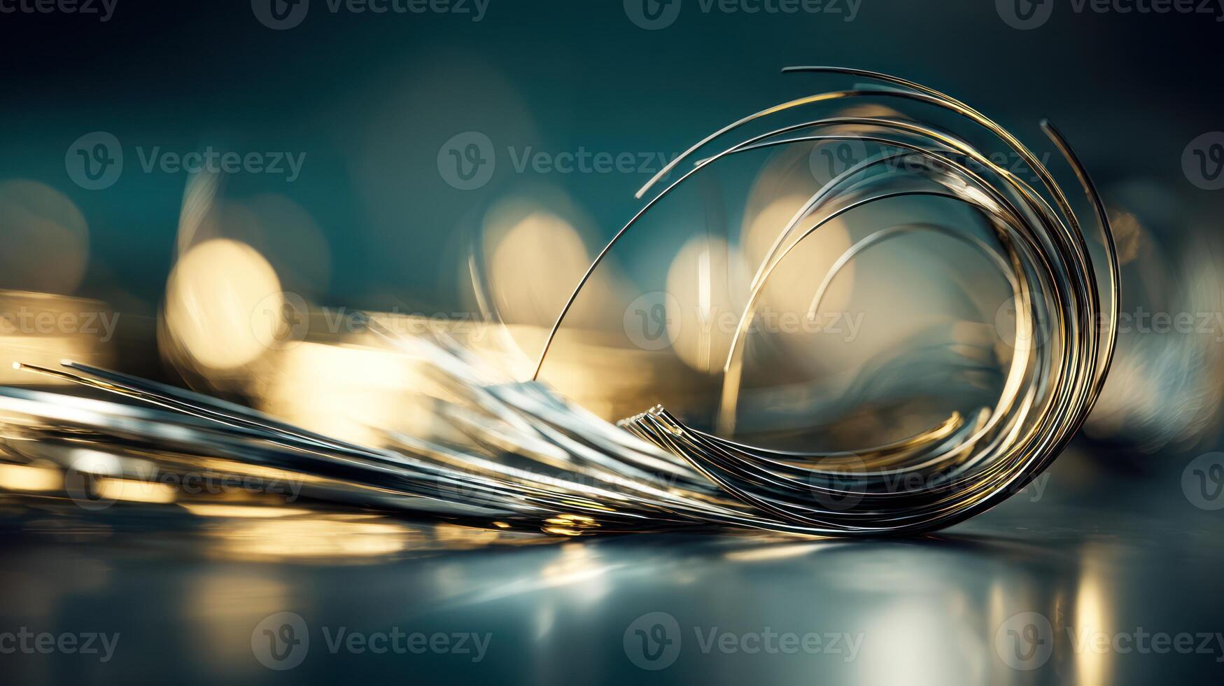 Abstract metallic wire sculpture with bokeh background for modern design Pro Photo