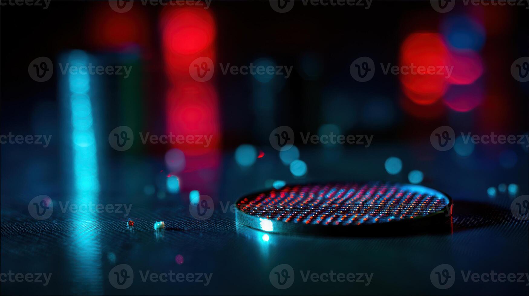 Abstract macro shot of a round metallic object with glowing lights Pro Photo
