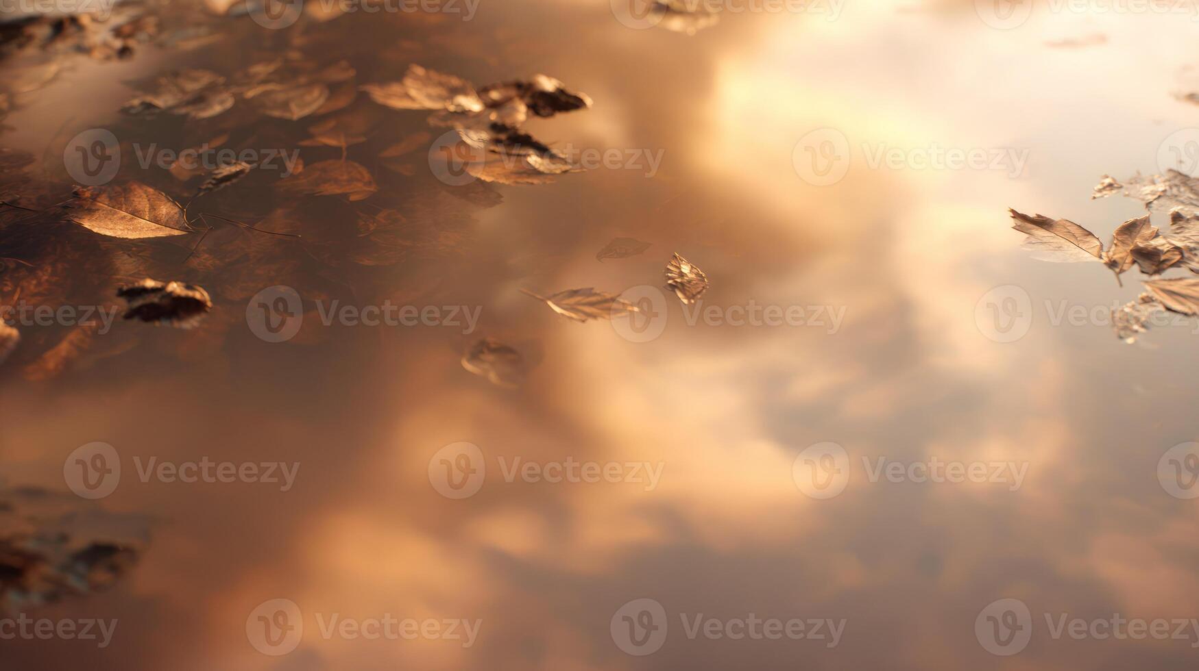 Abstract reflection with floating leaves and cloudy sky background Pro Photo