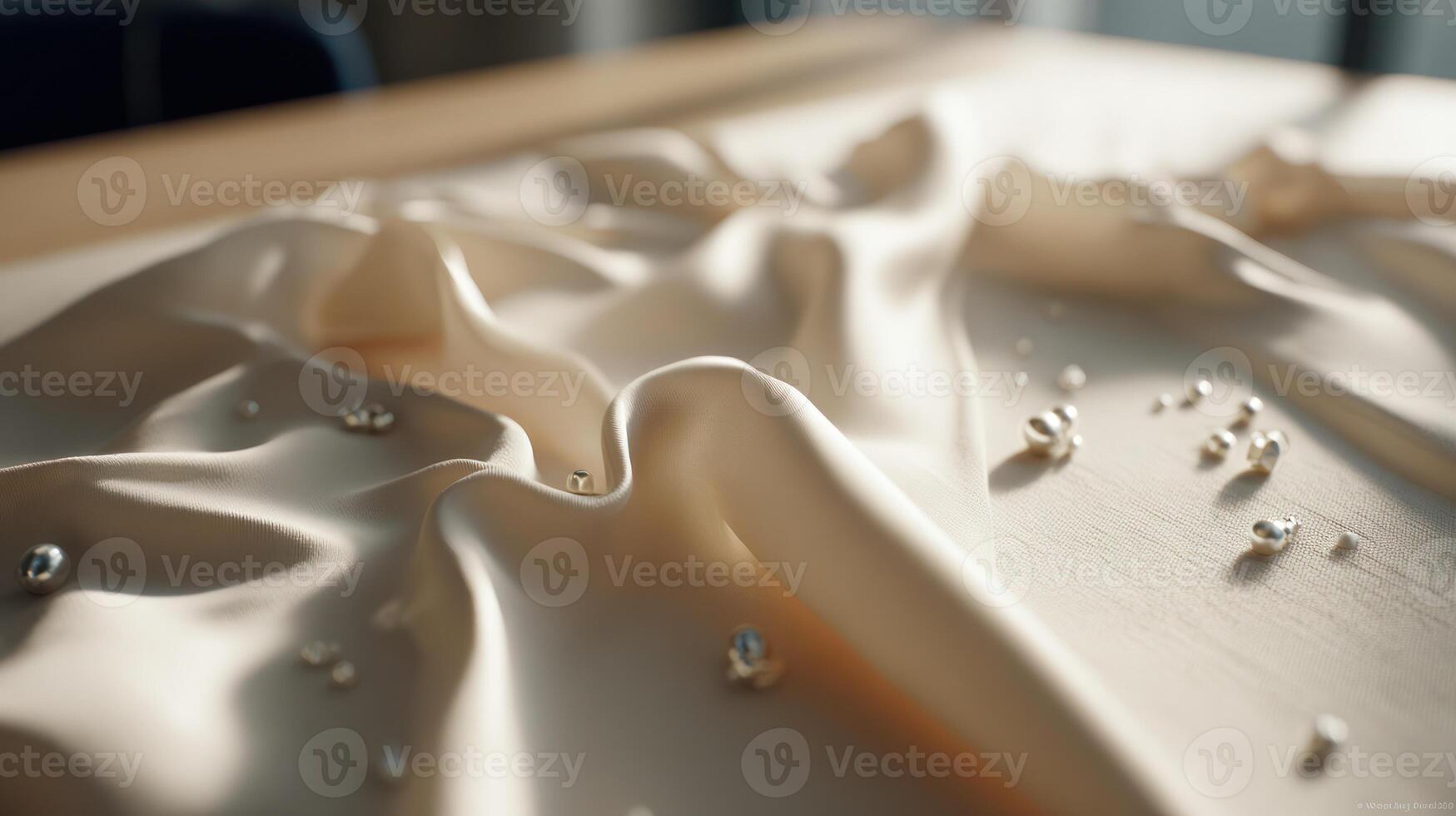 Elegant satin fabric with embedded elements illuminated by soft natural light Pro Photo