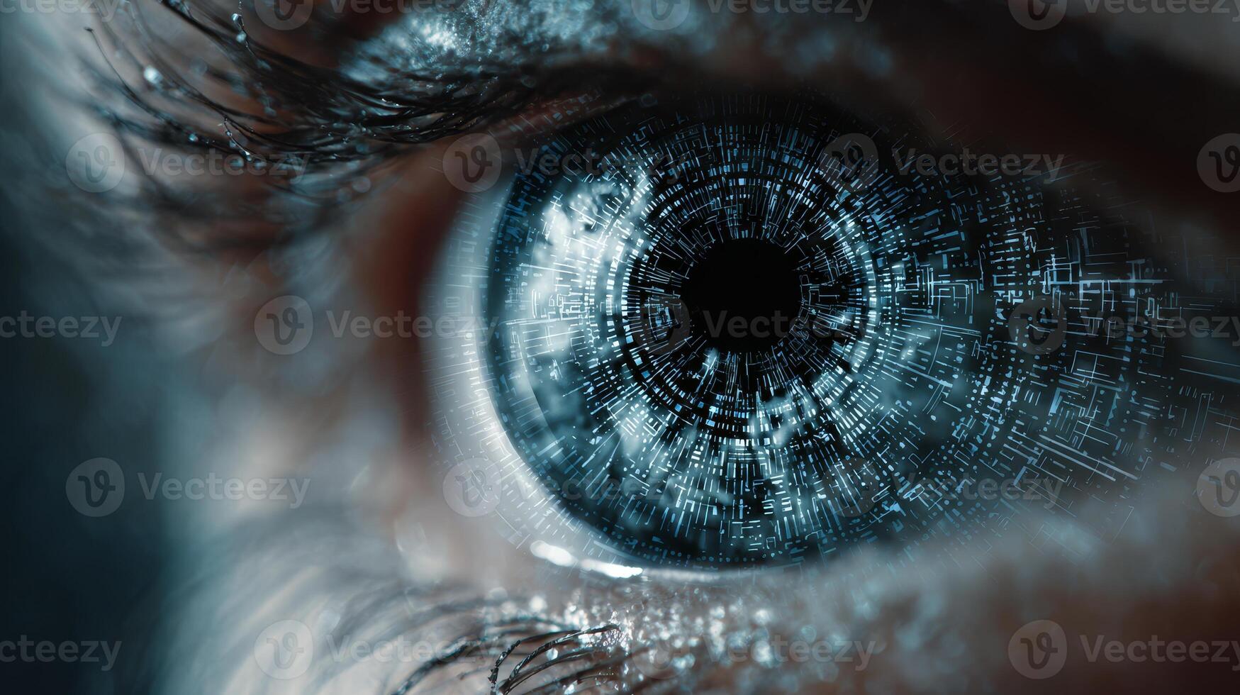 A close view of a human eye blended with digital patterns showcasing advanced biometric technology concepts Pro Photo