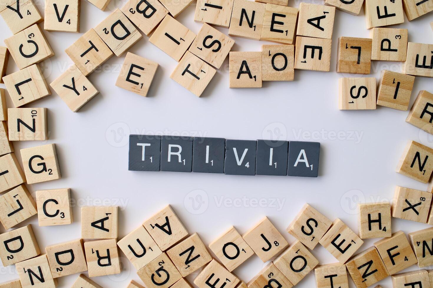 Trivia word in wooden cube blocks, fun facts concept, quiz and knowledge game idea, entertainment and learning theme Pro Photo