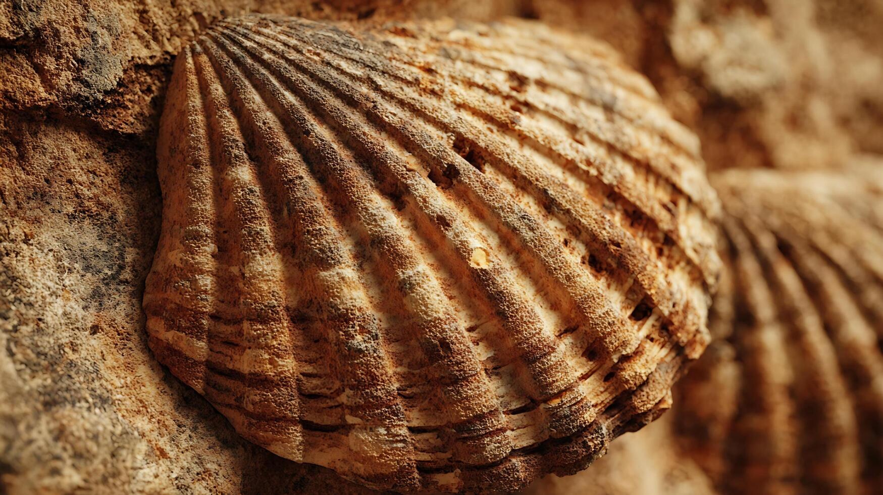Fossilized sea shell embedded in sediment displaying ancient geological formations and patterns photo