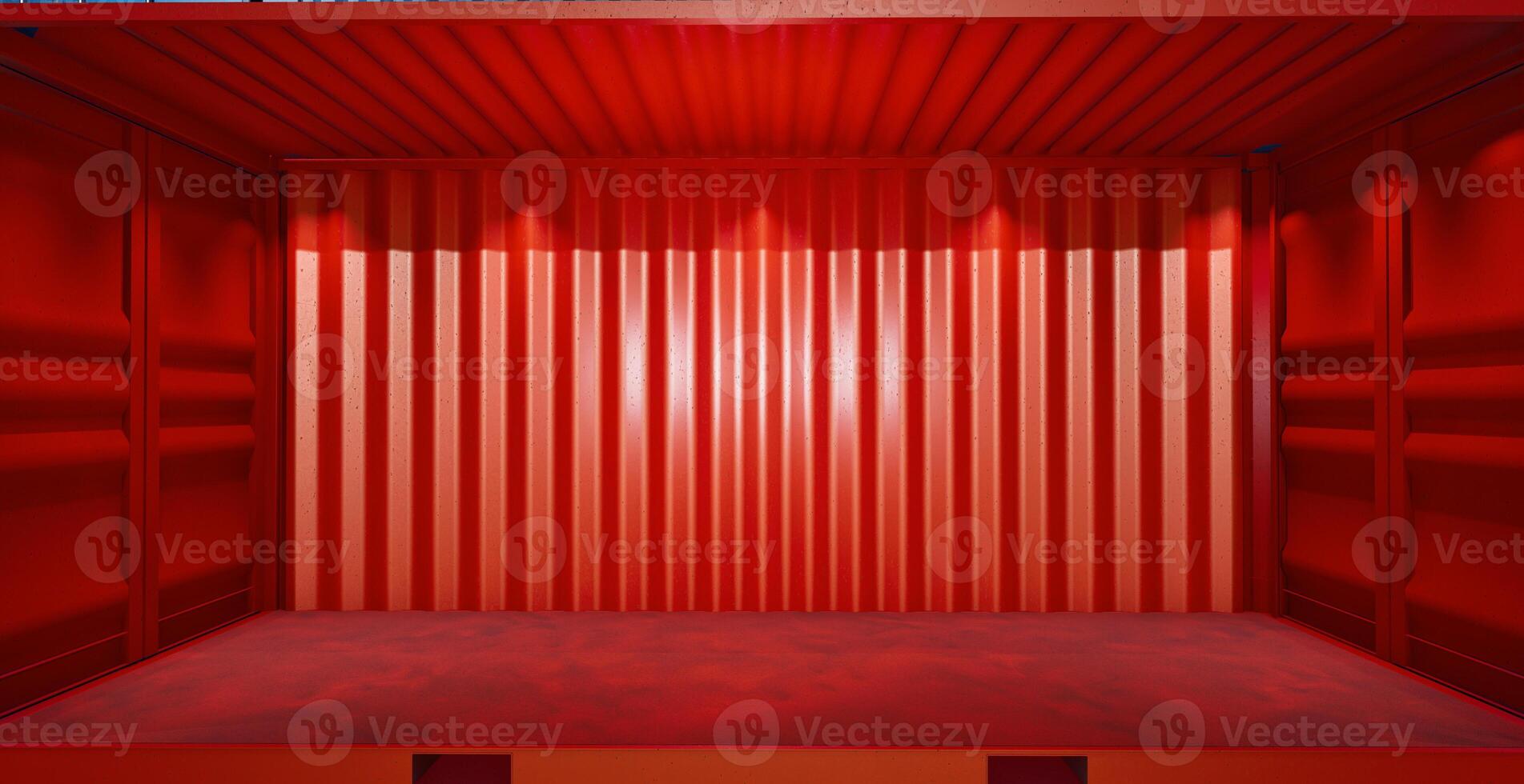 red shipping container without side wall. open empty red shipping container side view Pro Photo