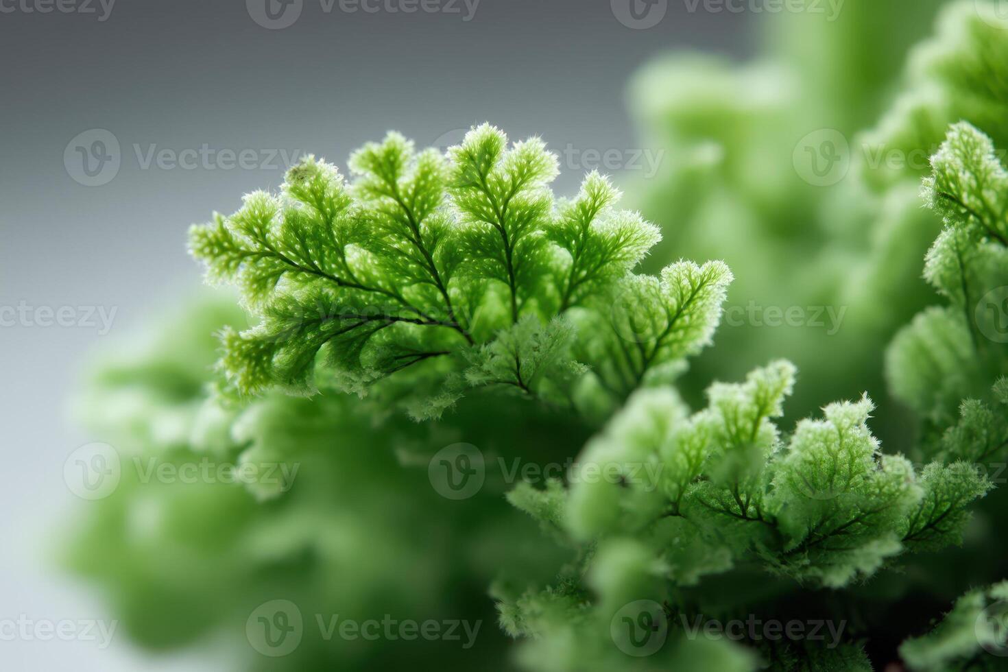 Vivid close-up of intricate green fern leaves with delicate veins, soft textures, and a gentle gradient of light. The image captures the natural beauty and complexity of foliage Pro Photo