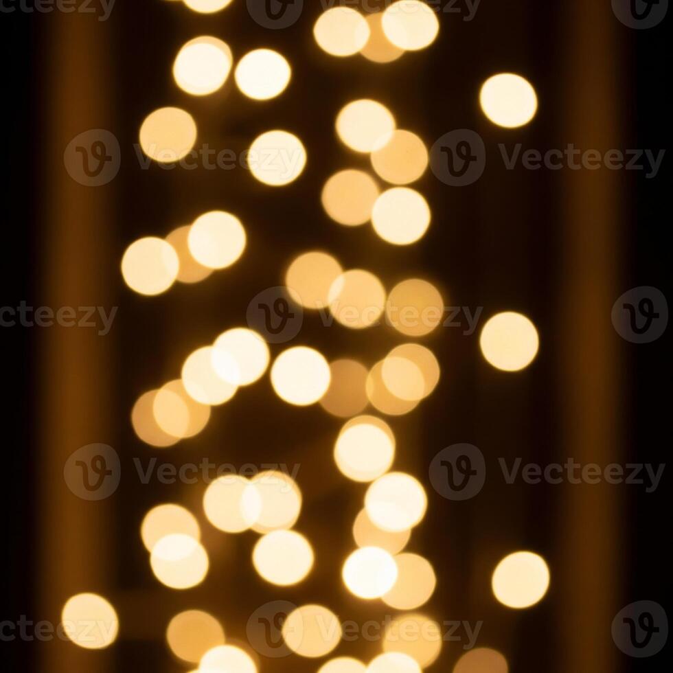 Abstract Bokeh Light String with Golden Circular Blurs on Dark Background Pro Photo