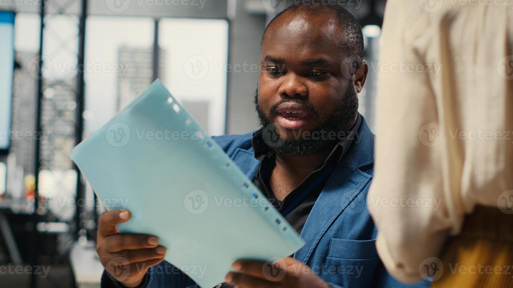 Close up of office secretary pushes a trolley filled with paperwork and documents, bringing files to a colleague and ensuring efficient distribution of resources. Workplace support. Camera B. Pro Photo
