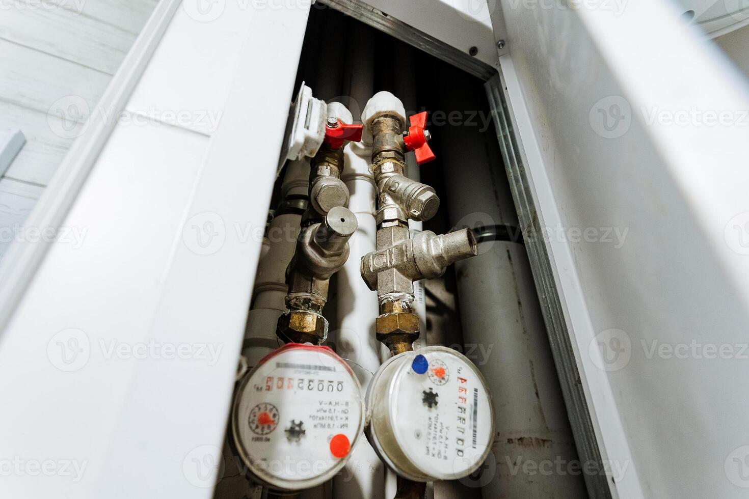 In a utility room, you can find important components of an industrial heating system, including gauges and valves that play a crucial role in its efficient operation and functionality Pro Photo
