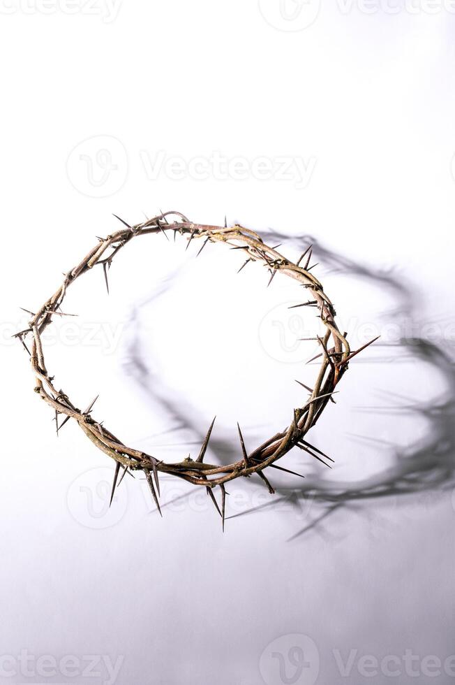 Jesus Crown of thorns casting a distinct shadow for Christian background, Easter concept creating a symbolic image of suffering, sacrifice, for space remembrance Copy text Pro Photo