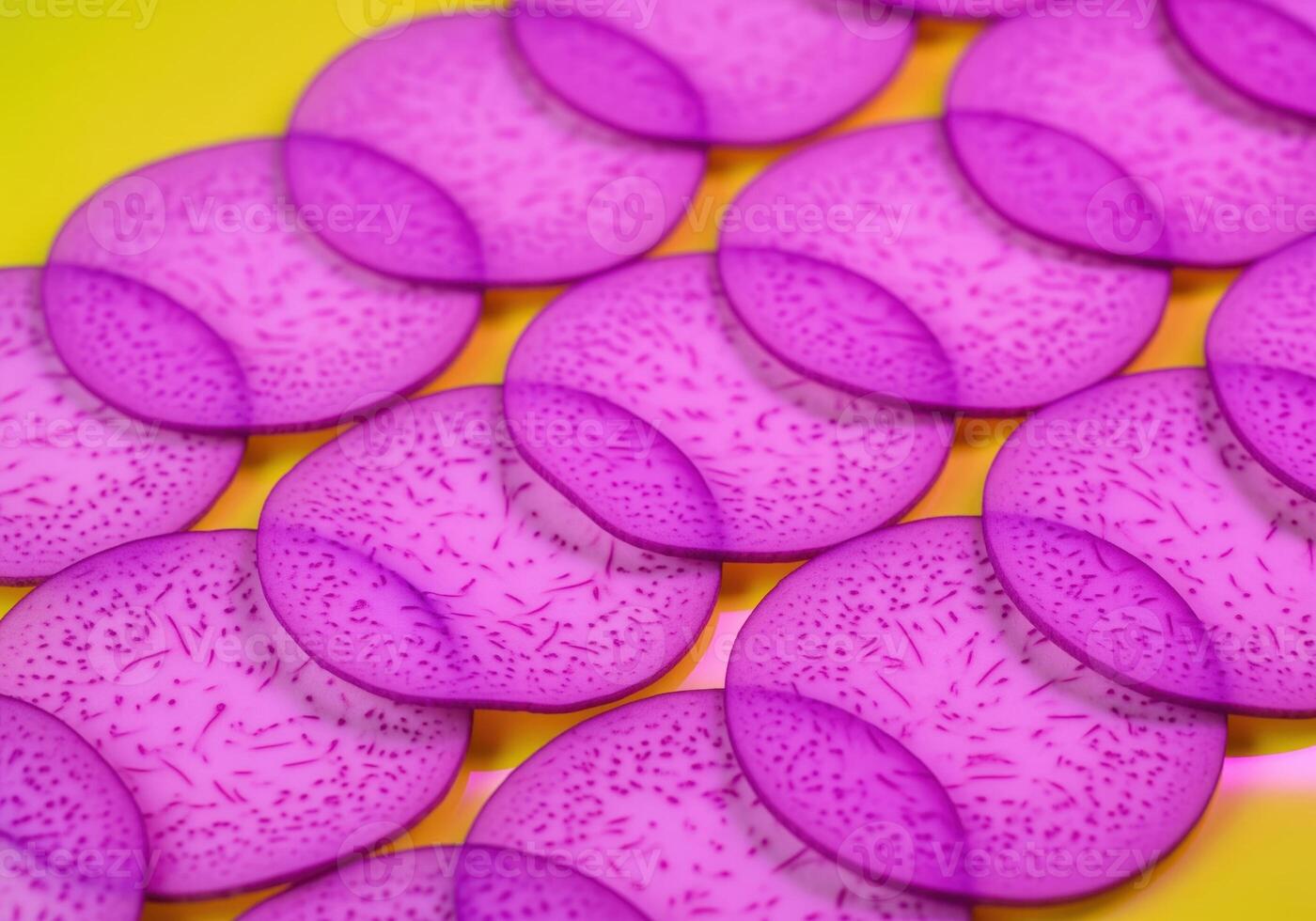 Abstract macro view of bright purple taro root slices arranged in a geometric pattern. Pro Photo
