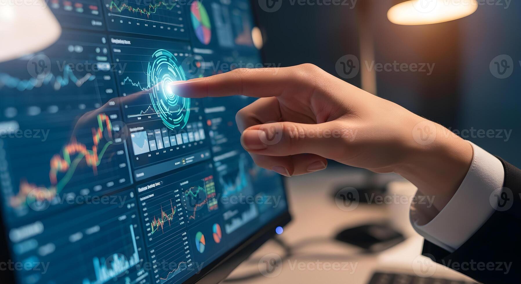 Analyzing Financial Data on a Digital Interface with Touch Interaction Pro Photo