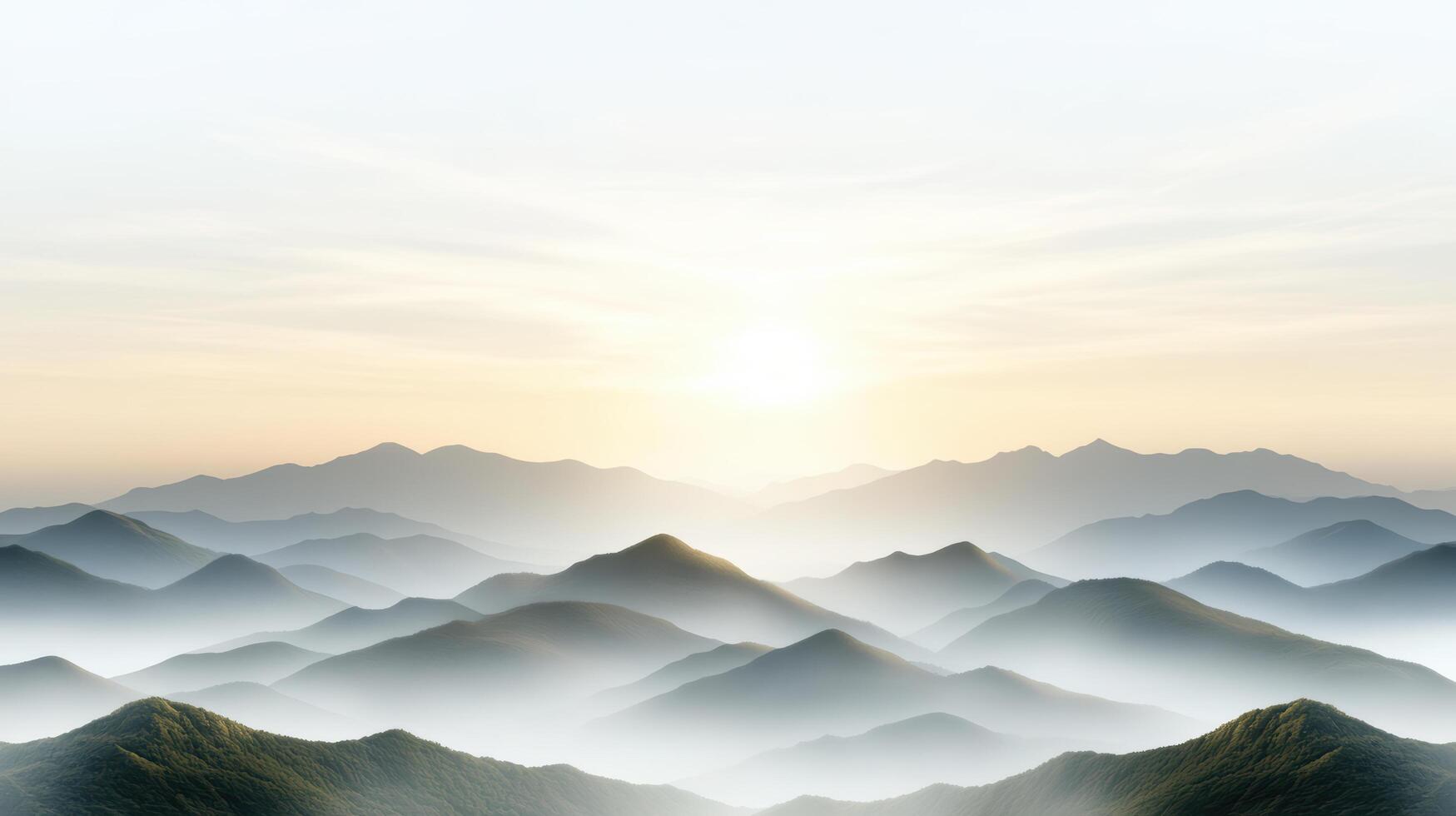 A mountain range with fog and mountains in the background photo