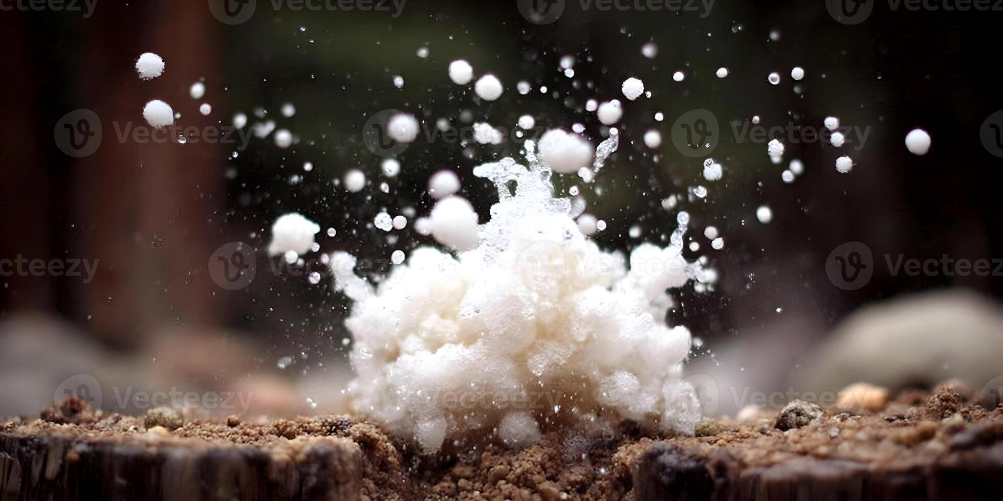 White foam erupts from the ground creating a dynamic splash of bubbles and droplets Pro Photo