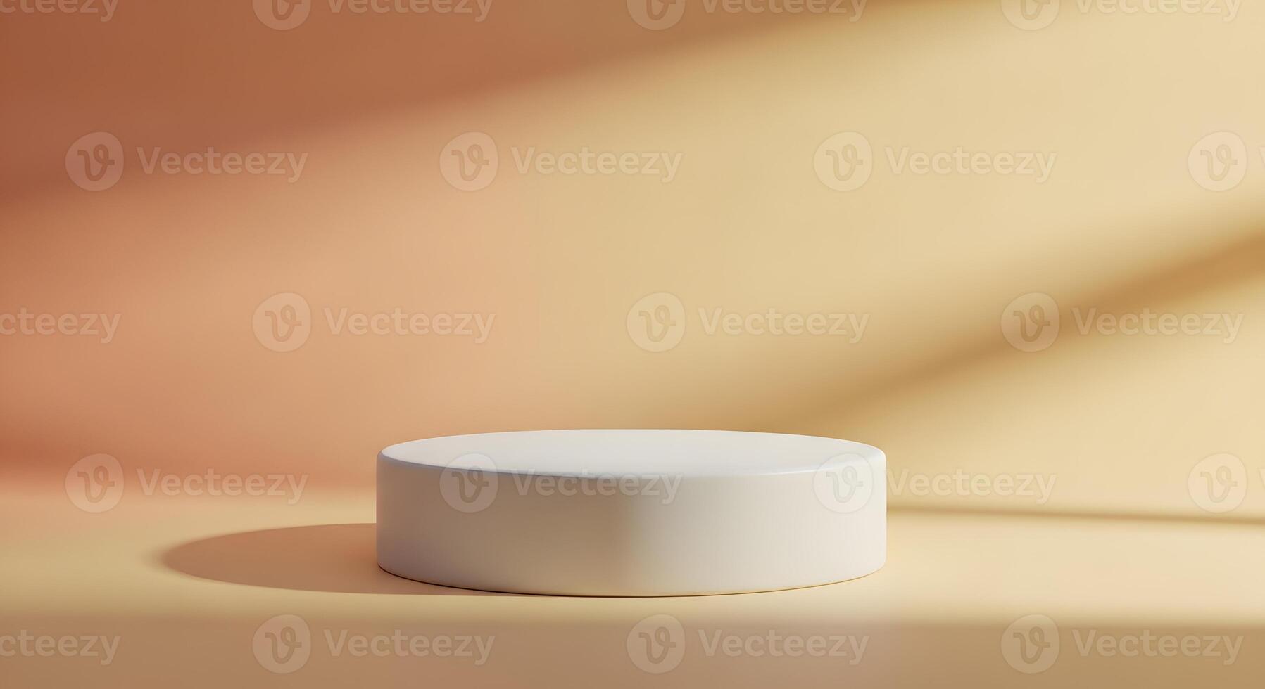 Minimalist cylindrical podium display with elegant sunlight shadows on a warm background, ideal for product showcasing and abstract scene compositions Pro Photo