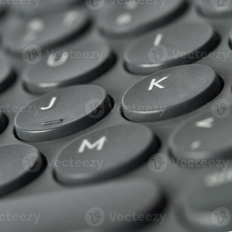 Close-up view of black computer keyboard keys with j, k, and m visible. Pro Photo