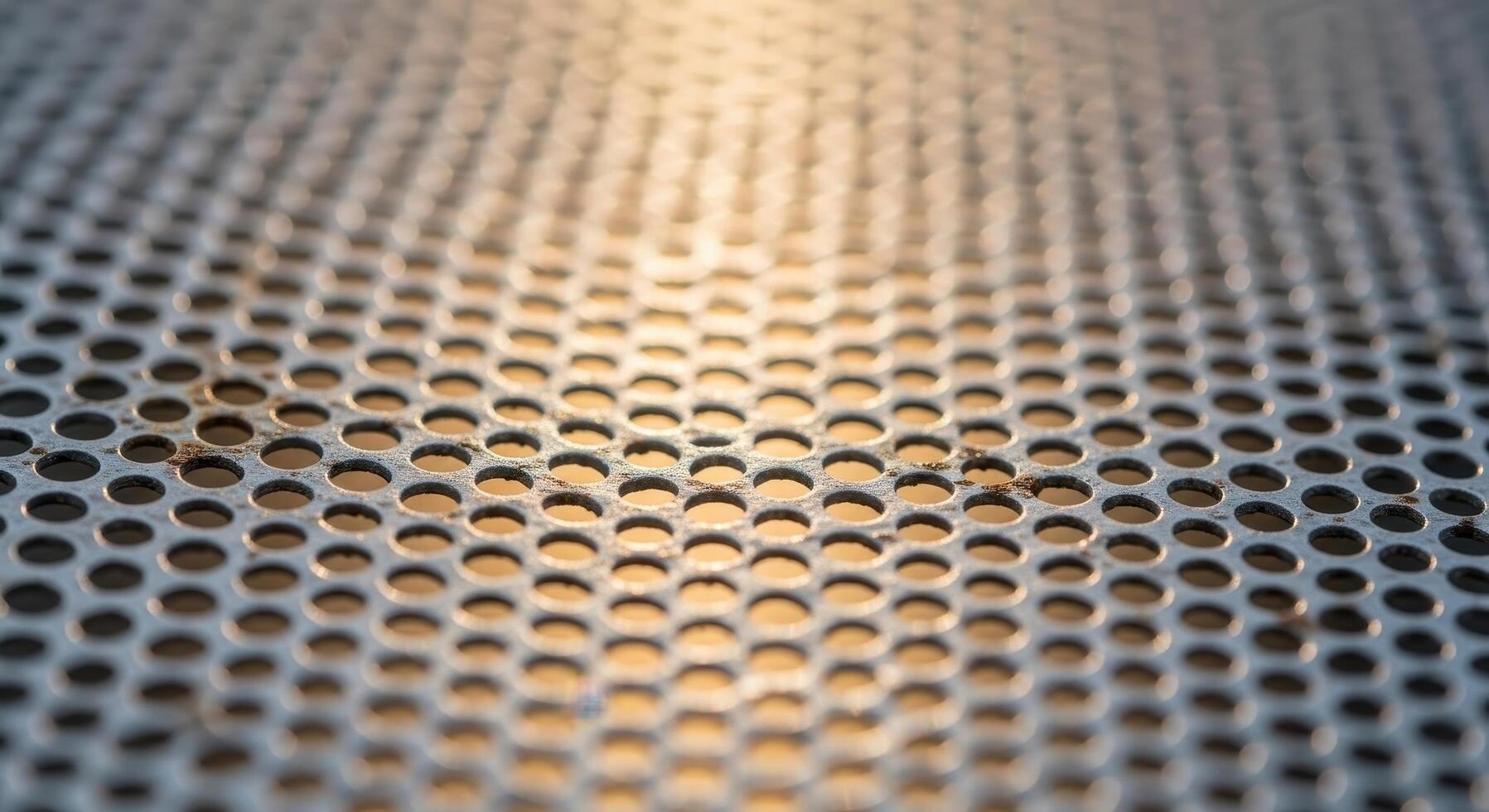 Close-up View of Perforated Metal Surface A Detailed Study of Texture, Pattern, and Metallic Elements, Exploring the Material's Industrial Aesthetic photo