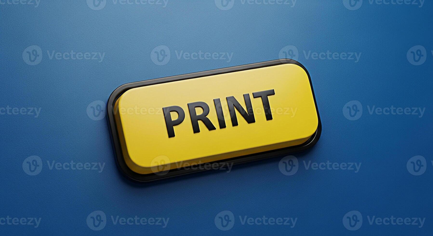 A vibrant yellow print button poised on a textured blue surface symbolizing the act of initiating a printing process with a sense of modern efficiency and technological readiness in a digital office e Pro Photo