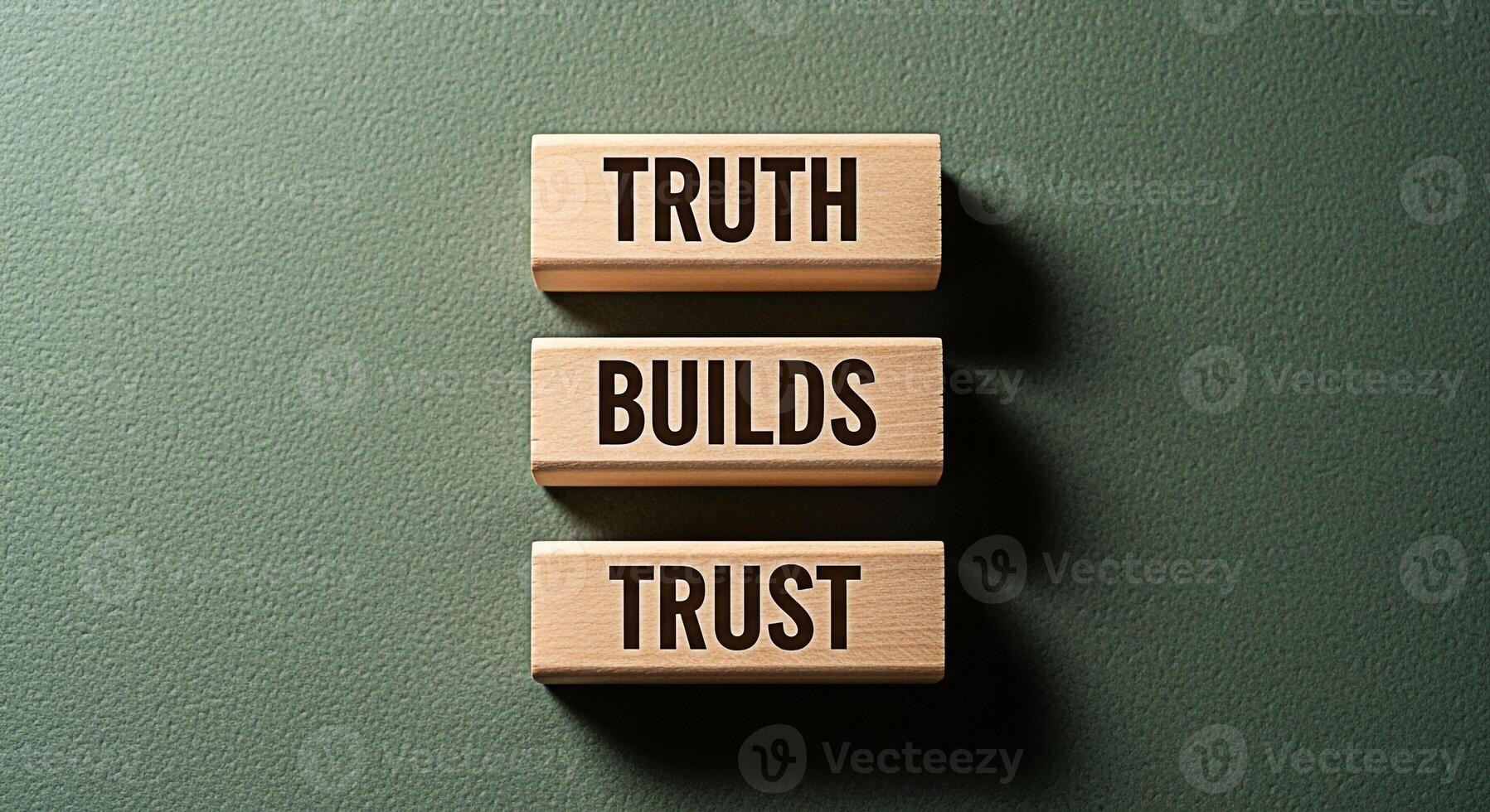 Wooden blocks displaying Truth Builds Trust on a textured green background symbolizing integrity reliability and the importance of honesty in building strong relationships and fostering a trustworthy Pro Photo