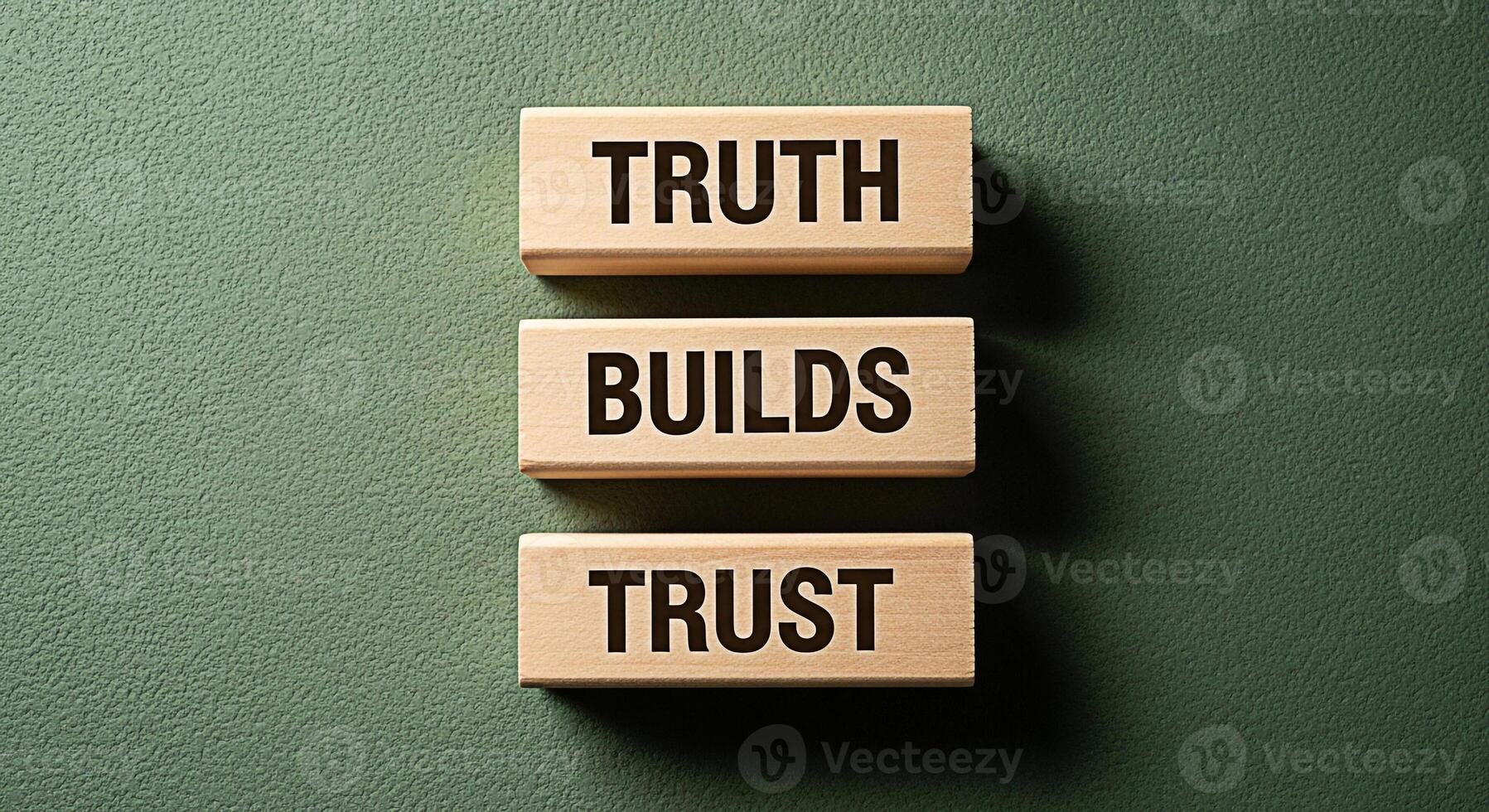 Wooden blocks stacked on a textured green surface displaying the message Truth Builds Trust symbolizing the importance of honesty and integrity in building strong relationships and fostering a trustwo Pro Photo