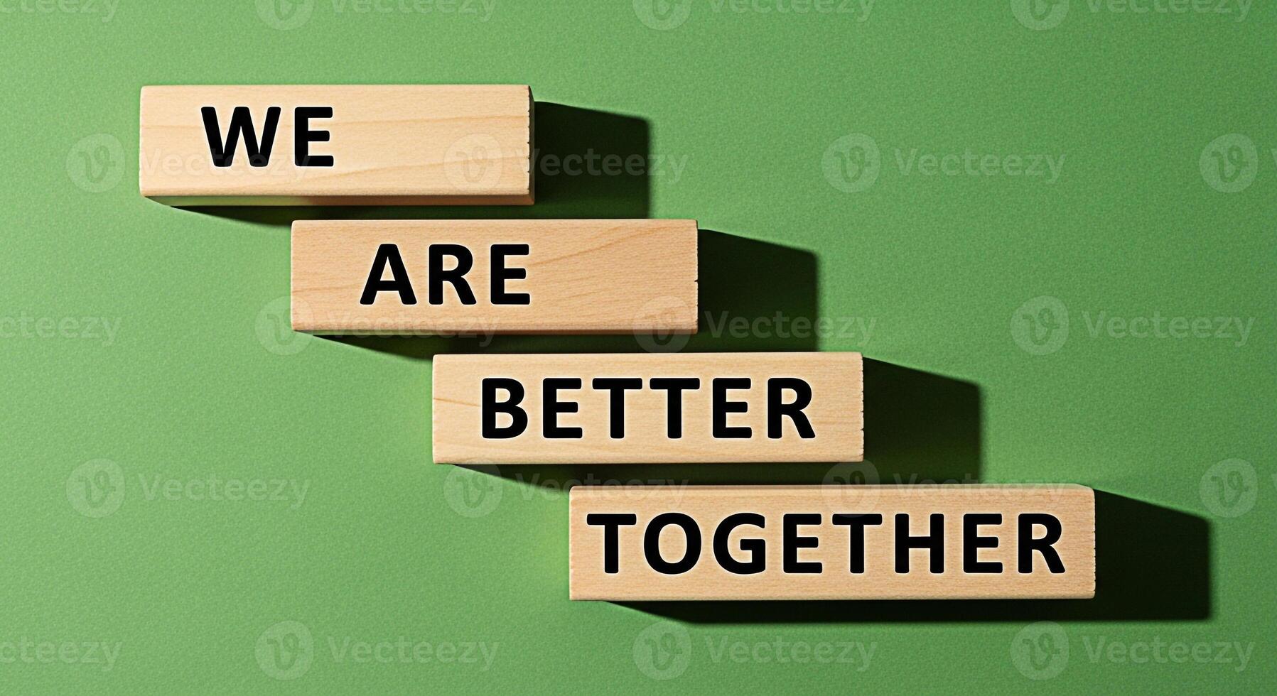 Wooden blocks displaying the message We Are Better Together on a green background symbolizing teamwork collaboration and the positive impact of unity in achieving common goals and fostering a supporti Pro Photo