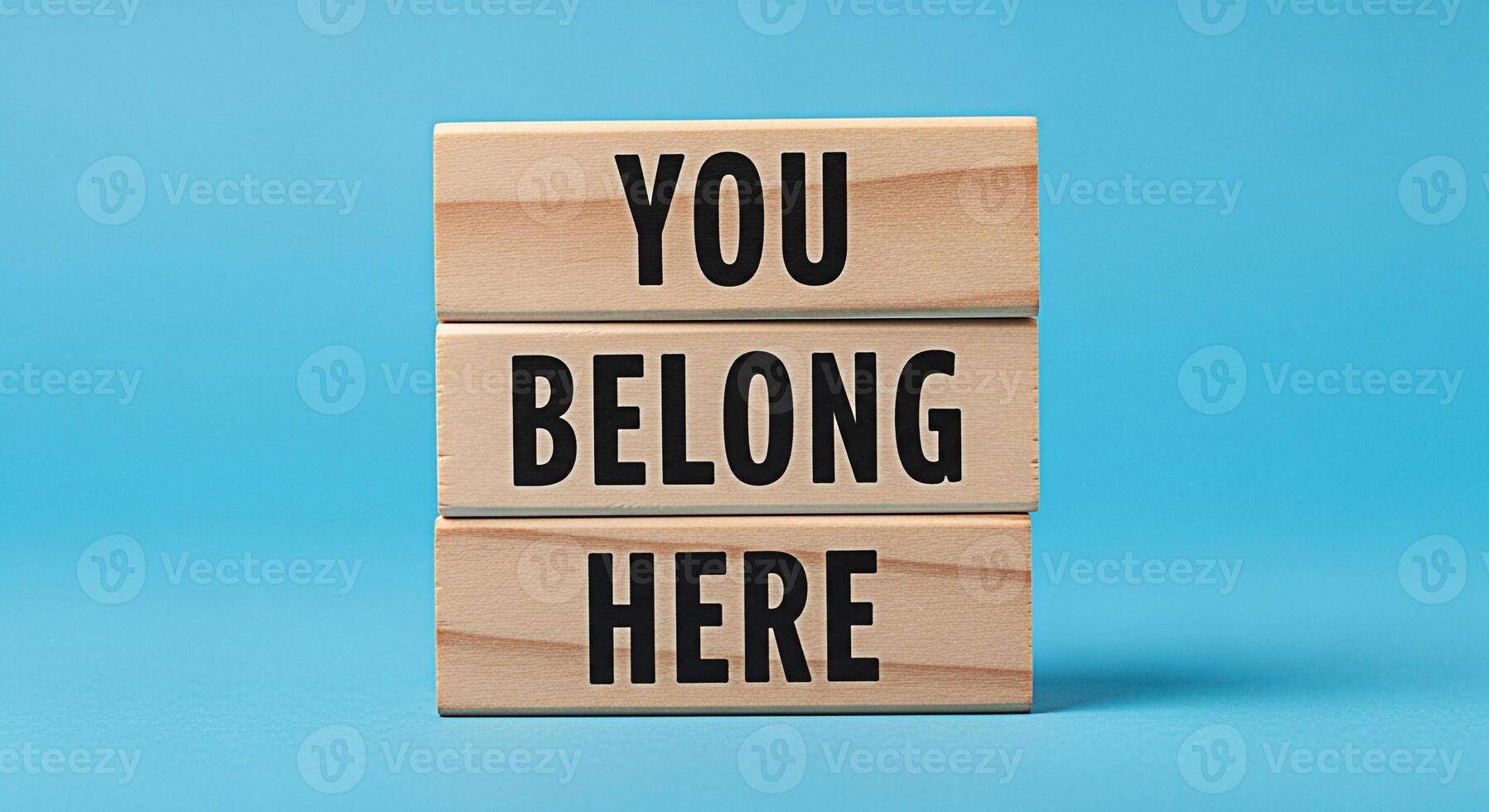 Wooden blocks stacked on a blue surface displaying the message You Belong Here creating a welcoming and inclusive atmosphere symbolizing acceptance and community in a simple and direct manner Pro Photo