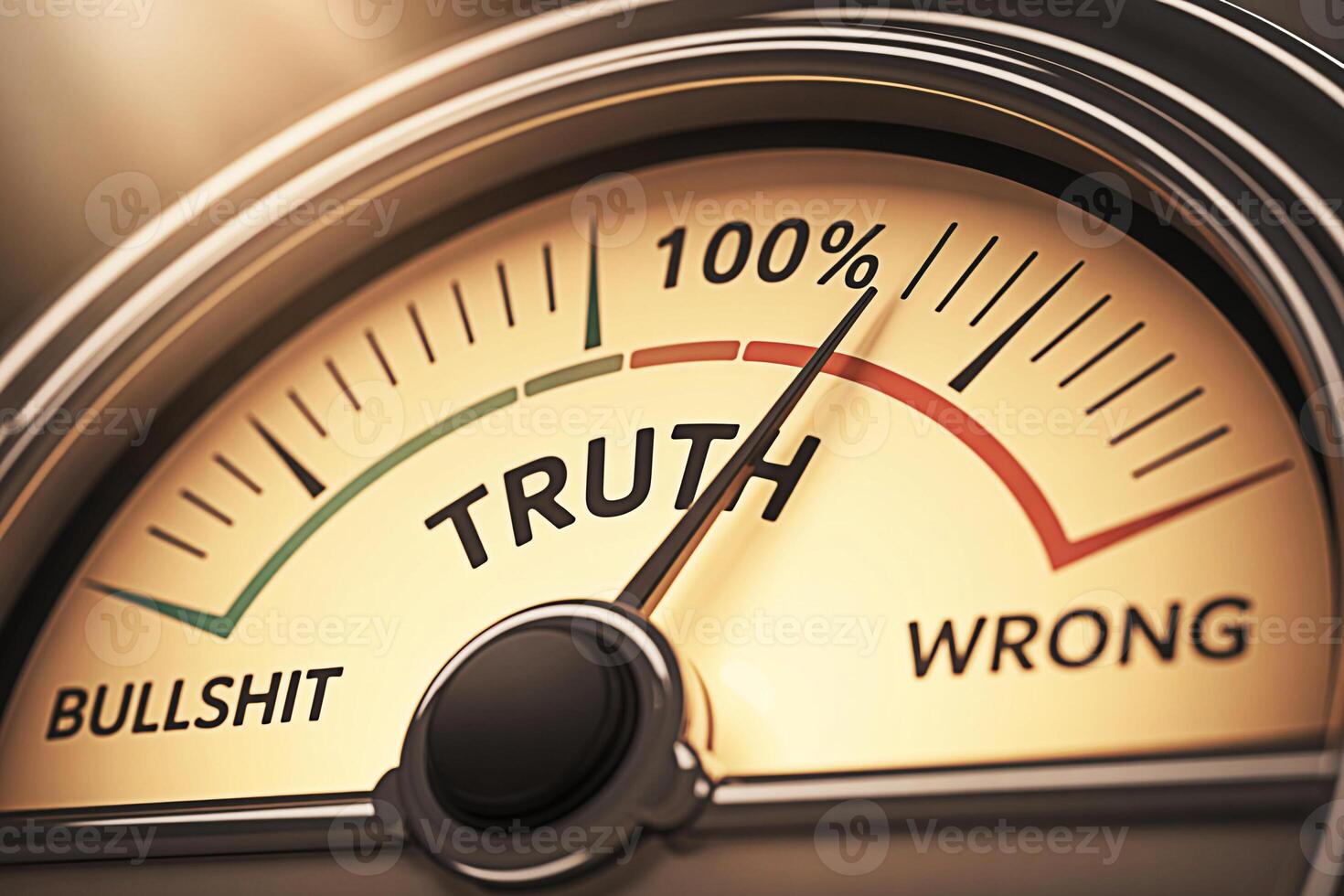 Closeup of a truth meter pointing to 100 in a conceptual setting symbolizing accuracy honesty and integrity in business politics and personal relationships with a focus on transparency and trust Pro Photo