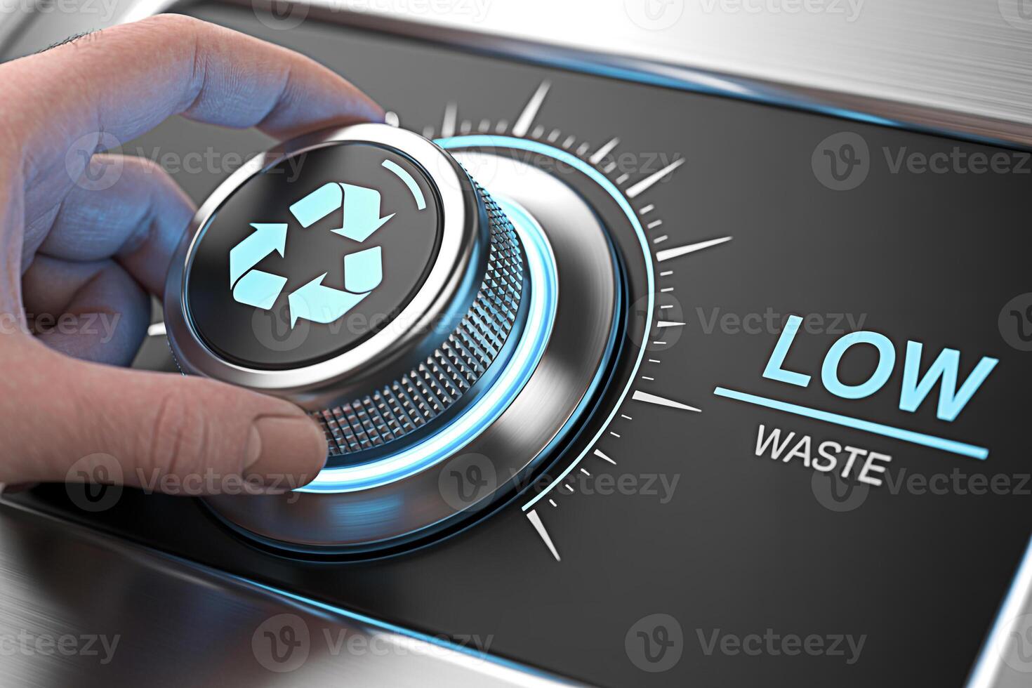 Closeup of a hand turning a dial with a recycle symbol in a modern ecoconscious setting promoting low waste and environmental responsibility emphasizing sustainability and a commitment to a greener fu Pro Photo