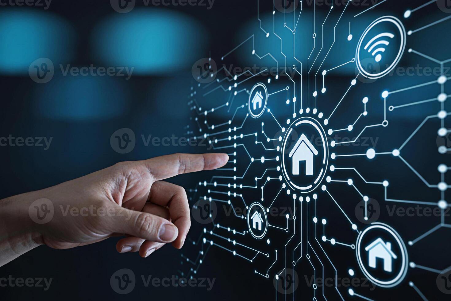 Human hand interacting with a futuristic smart home interface on a dark background showcasing connectivity and control with a modern innovative and technologically advanced concept Pro Photo