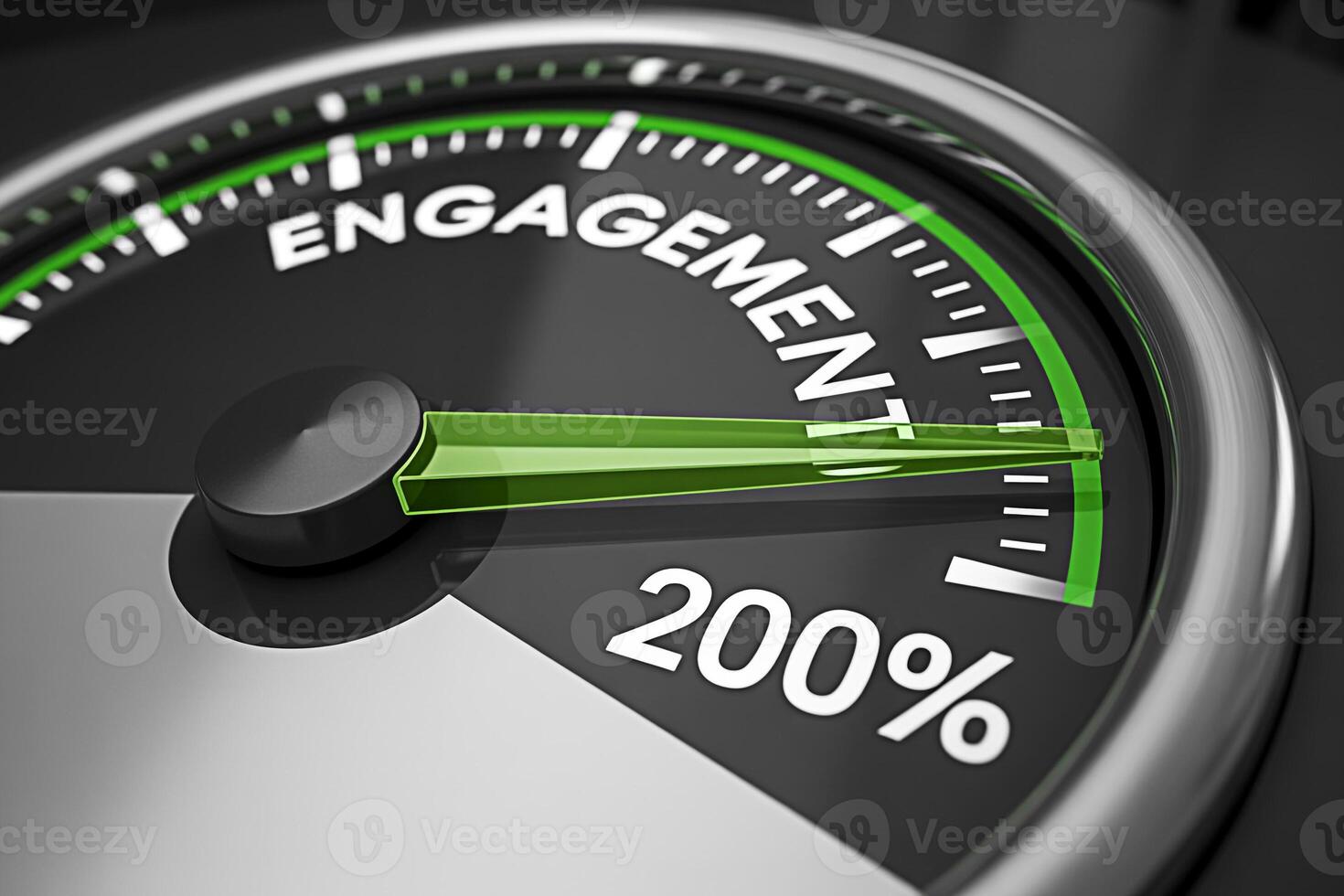 Engagement meter displaying 200 on a sleek dashboard symbolizing high performance and success in a business setting reflecting a mood of achievement and exceeding expectations indicating strong result Pro Photo
