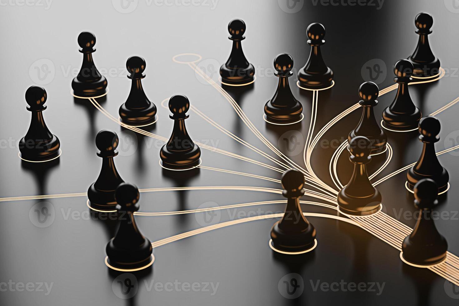 Strategic black chess pawns navigating a complex network on a reflective surface symbolizing leadership connection and the intricate pathways to success in a competitive business environment conveying Pro Photo