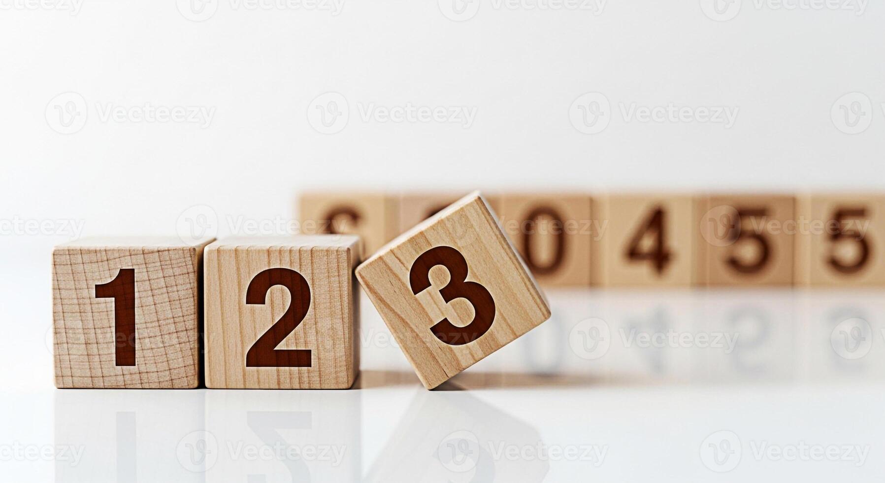 Wooden number blocks displaying numbers 1 2 and 3 on a white surface representing counting learning and early childhood education in a bright and minimalist setting conveying simplicity and clarity Pro Photo