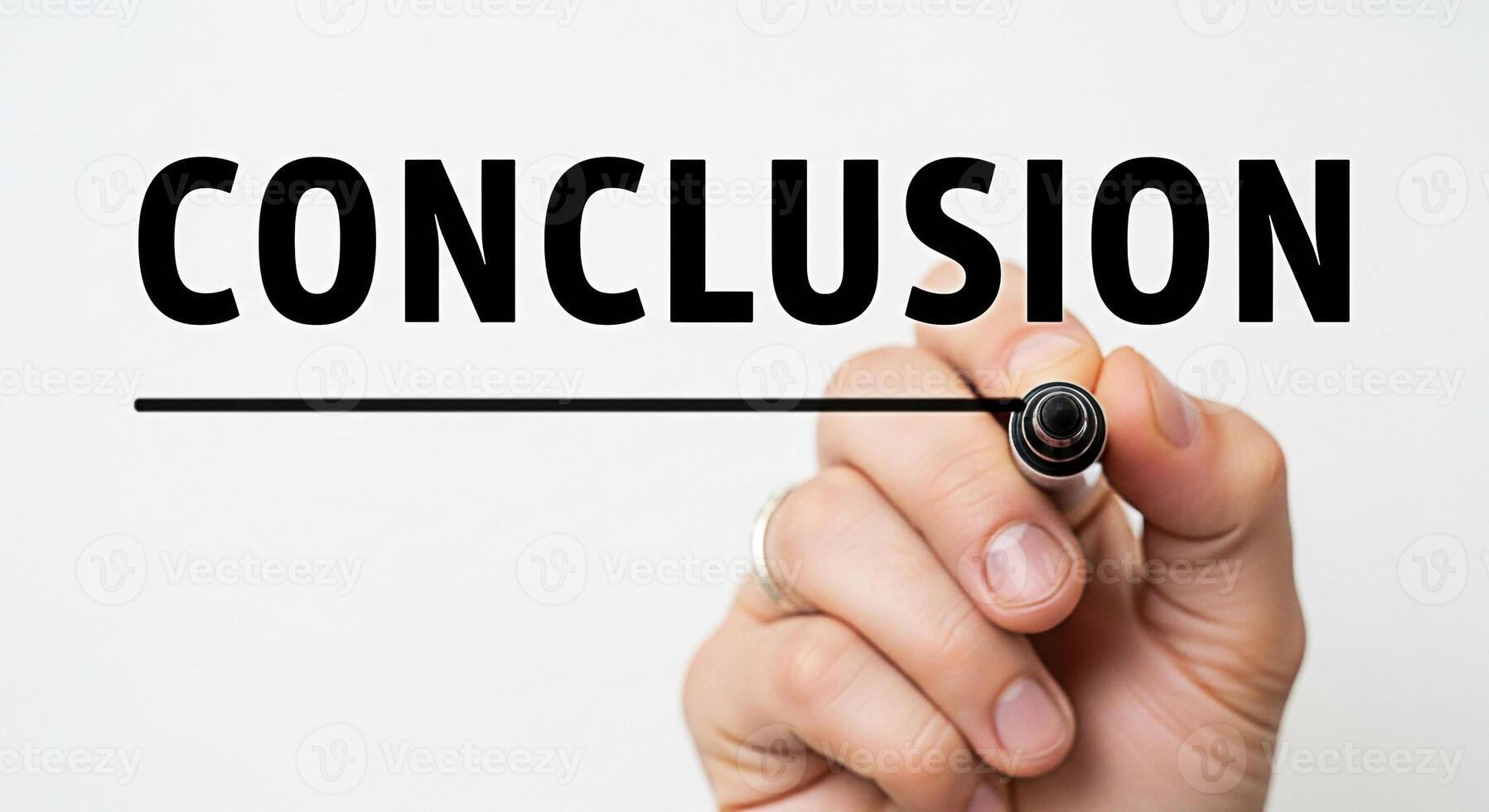 Hand underlining the word Conclusion on a white background symbolizing the final step in a process emphasizing the importance of closure and resolution creating a sense of accomplishment and finality Pro Photo