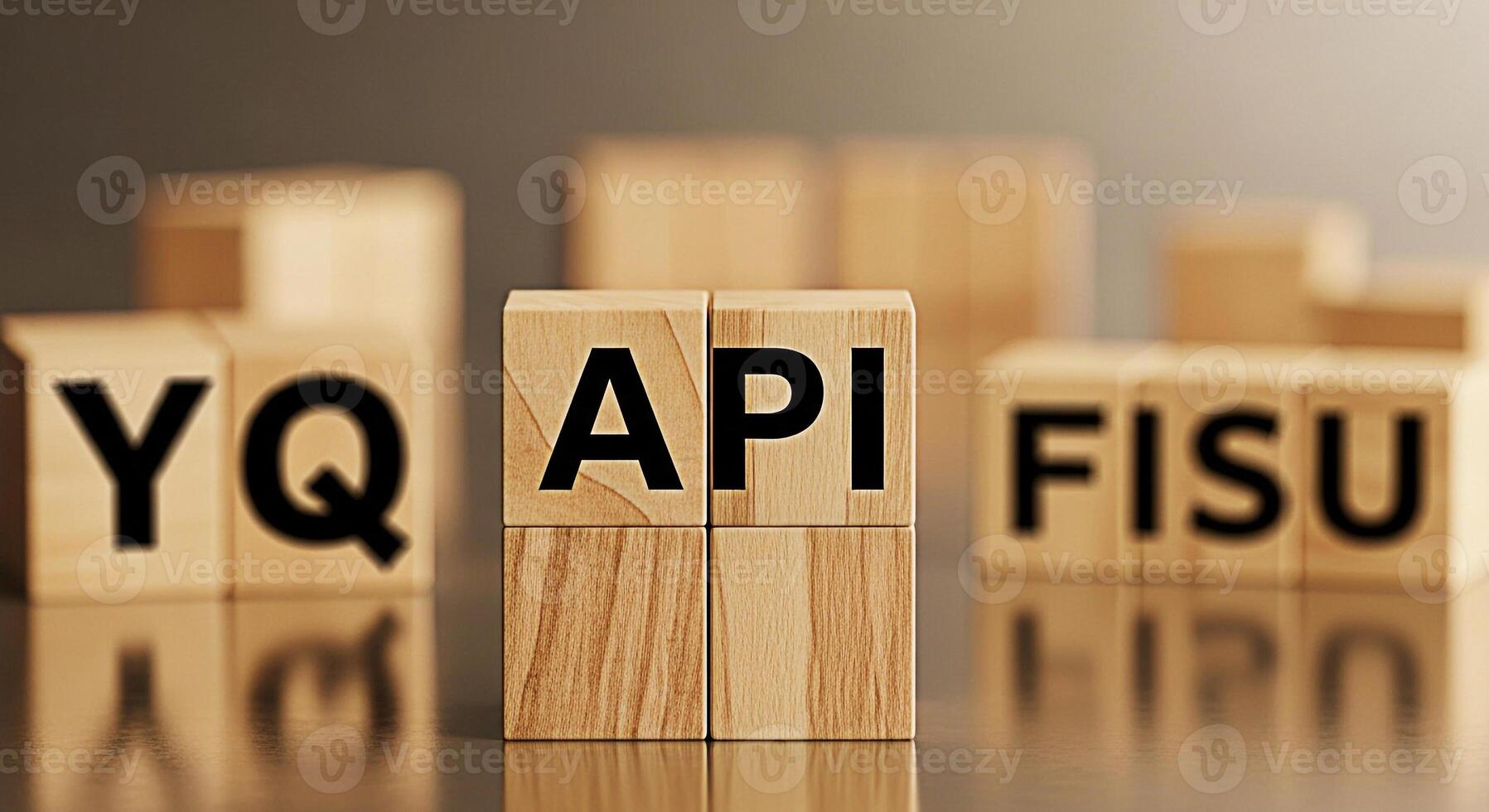 Wooden blocks spelling out API in a studio setting representing Application Programming Interface and software development conveying a sense of technology and innovation in a neutral and professional Pro Photo