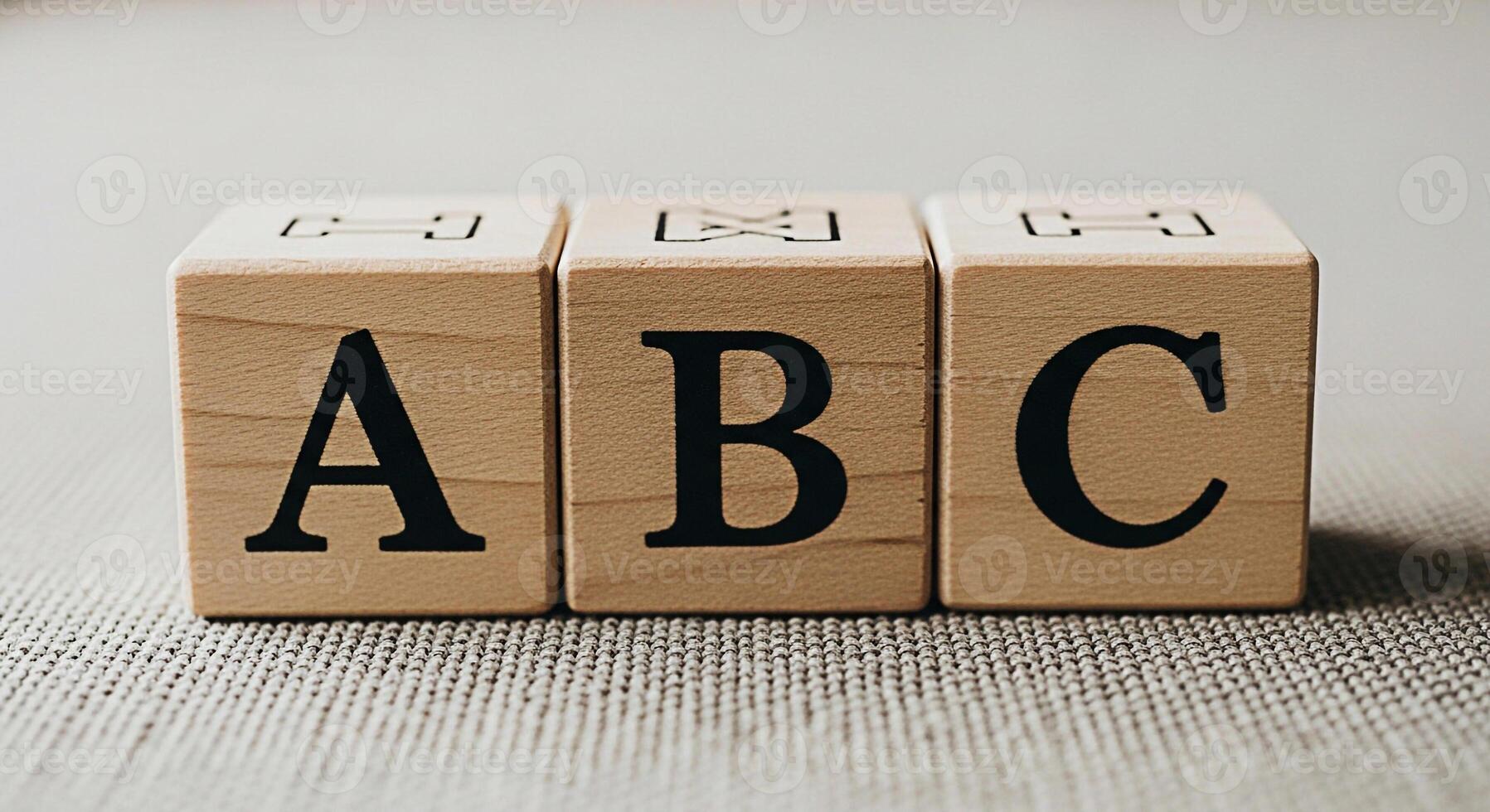 Closeup of wooden alphabet blocks displaying ABC on a textured surface symbolizing early childhood education learning the basics and a playful approach to language development in a bright and inviting Pro Photo