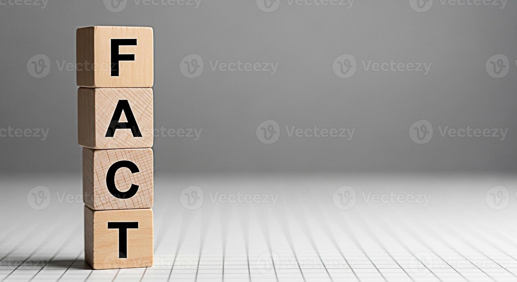 Wooden blocks stacked to spell FACT on a white grid surface against a gray background representing truth information and the importance of verifying details with a focus on accuracy and reliability Pro Photo