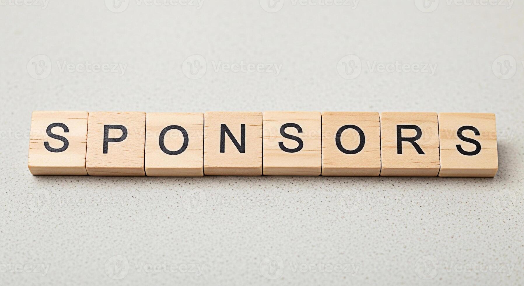 Wooden blocks spelling Sponsors on a textured surface representing financial support and partnerships conveying a message of collaboration and investment in a clean minimalist setting Pro Photo