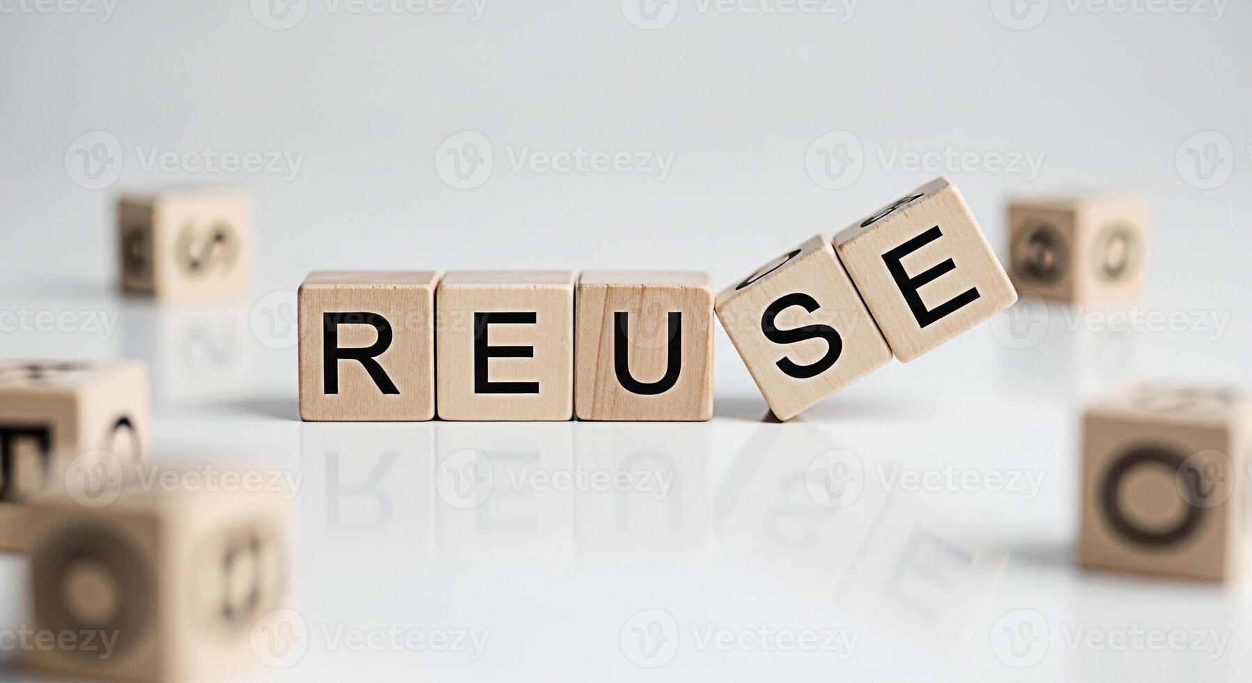 Wooden blocks spelling REUSE on a white surface promoting ecofriendly practices and sustainability conveying a message of environmental responsibility and encouraging mindful consumption for a greener Pro Photo