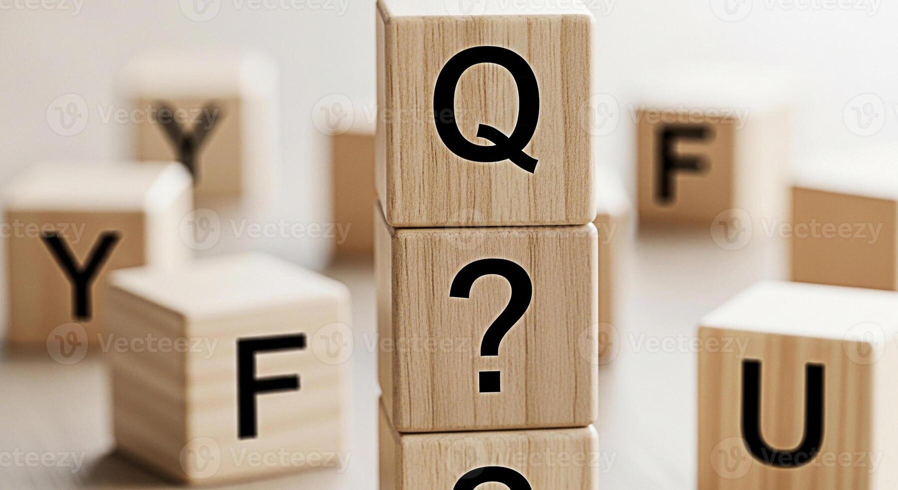 Stack of wooden blocks displaying a question mark in a bright studio setting symbolizing uncertainty inquiry and the search for answers in business education and personal development contexts Pro Photo