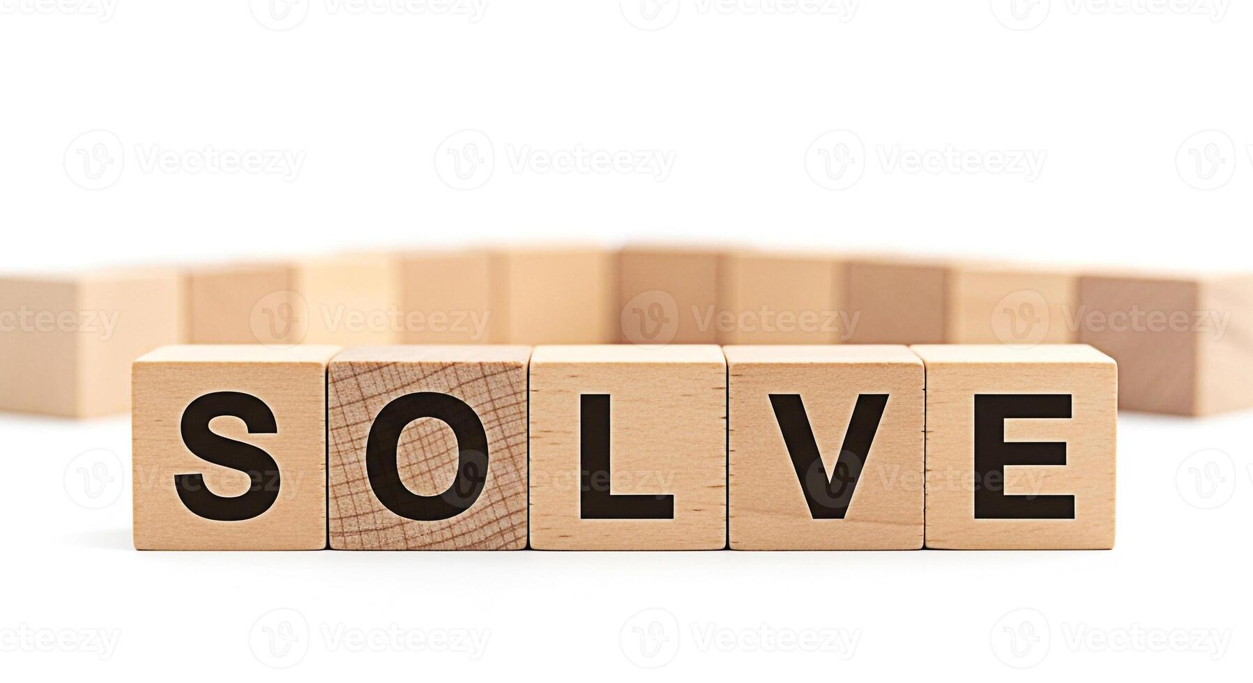 Wooden blocks spelling SOLVE on a white surface representing problemsolving and critical thinking in a minimalist setting conveying a sense of clarity focus and the potential for finding solutions Pro Photo