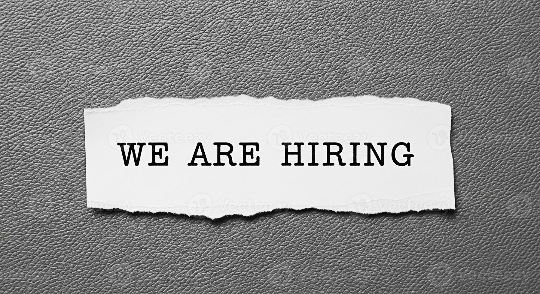 Torn paper message displaying We are hiring on a textured gray background symbolizing opportunity and growth for job seekers in a competitive market creating a sense of urgency and anticipation Pro Photo