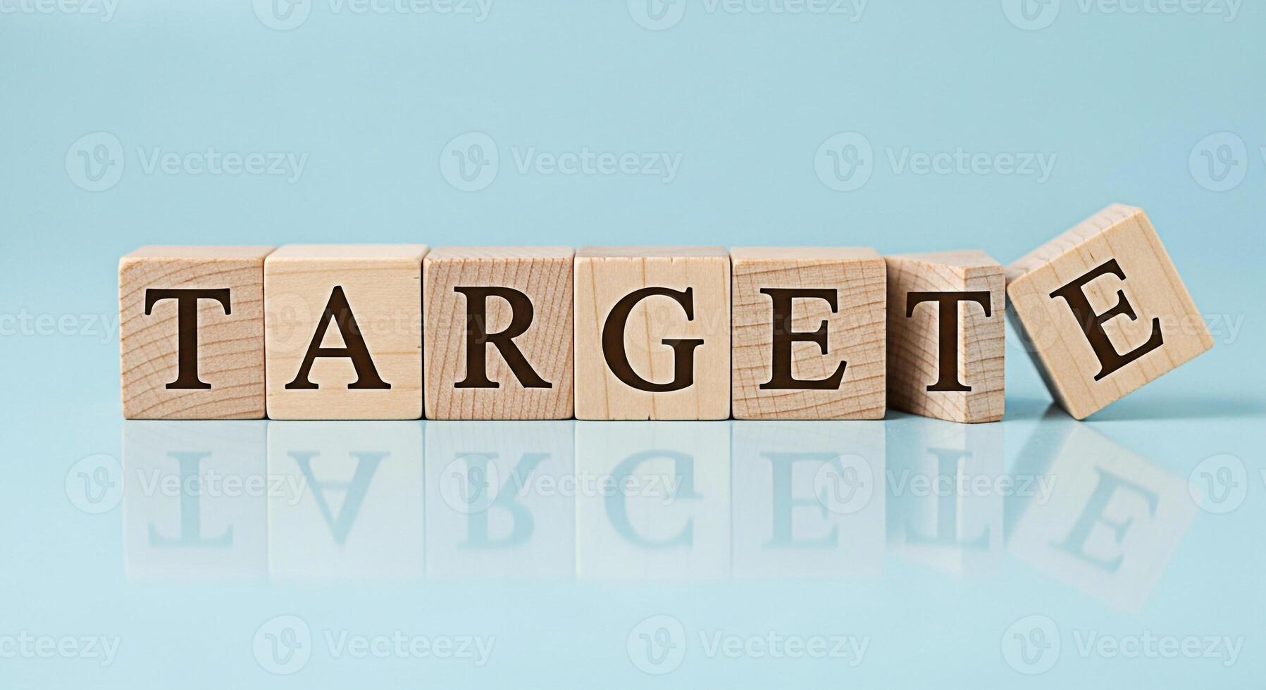 Wooden blocks spelling TARGET on a reflective blue surface representing goal setting and achievement symbolizing focus precision and strategic planning in a business or personal development context Pro Photo